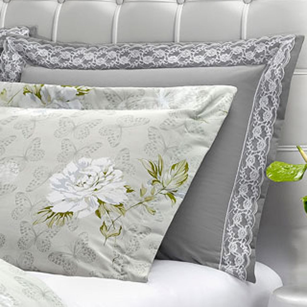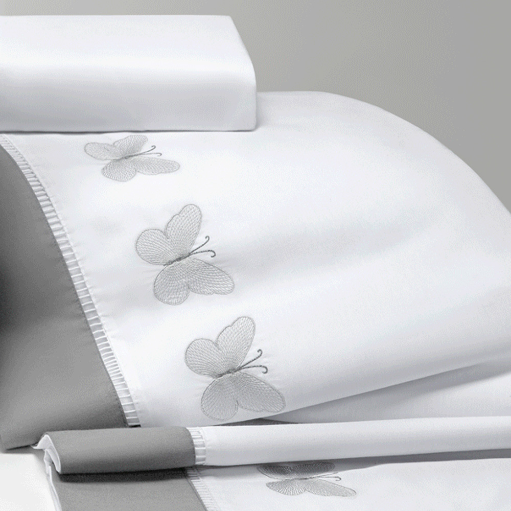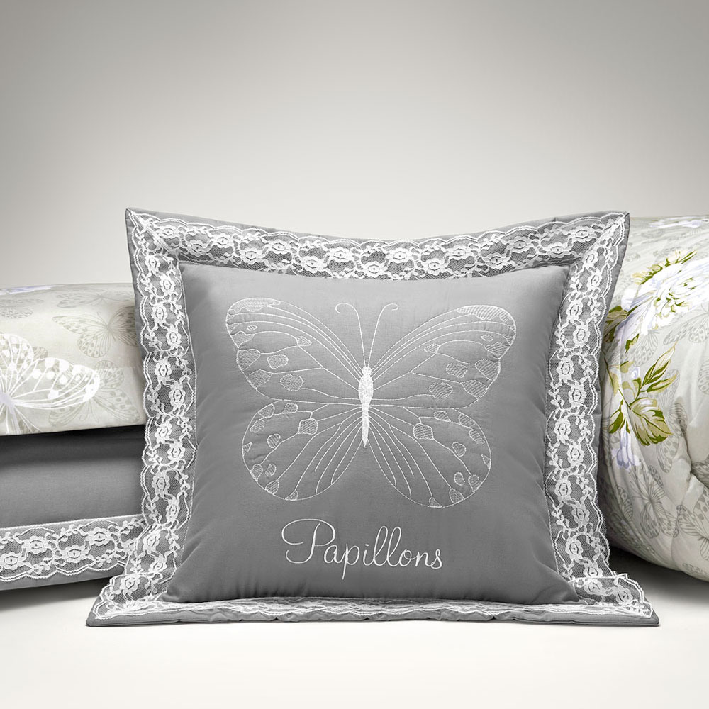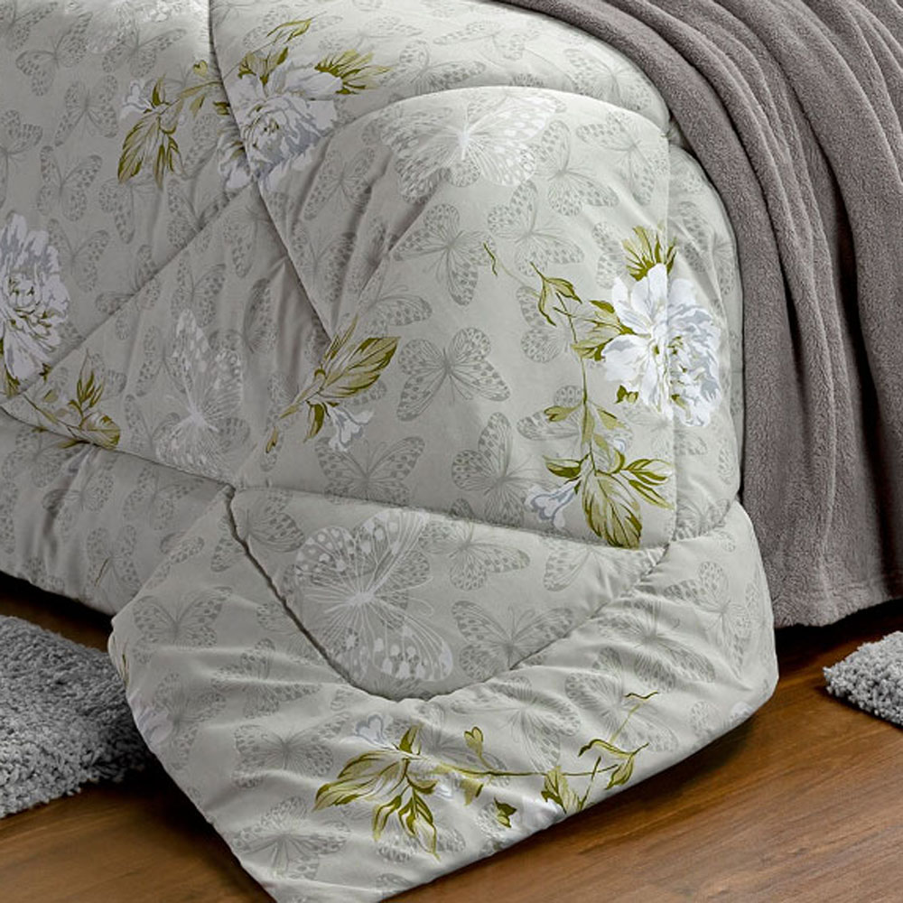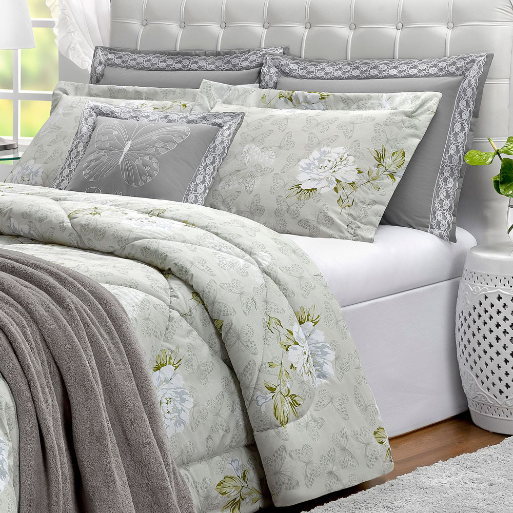 Kit Edredom Papillons Queen 180 Fios + Lençol 11 Peças - Cinza Floral