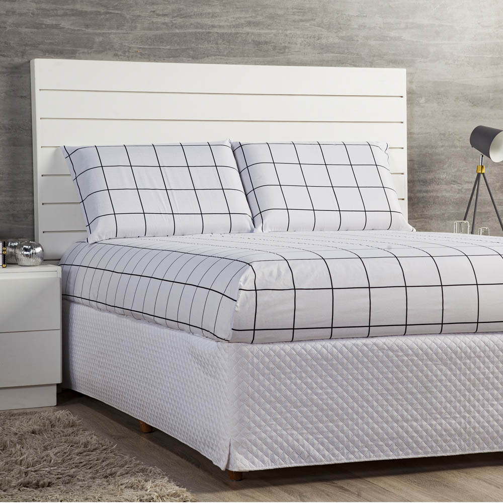 Jogo Cama Lençol Square King Quadriculado Percal 180 Fios 3 Peças - Branco