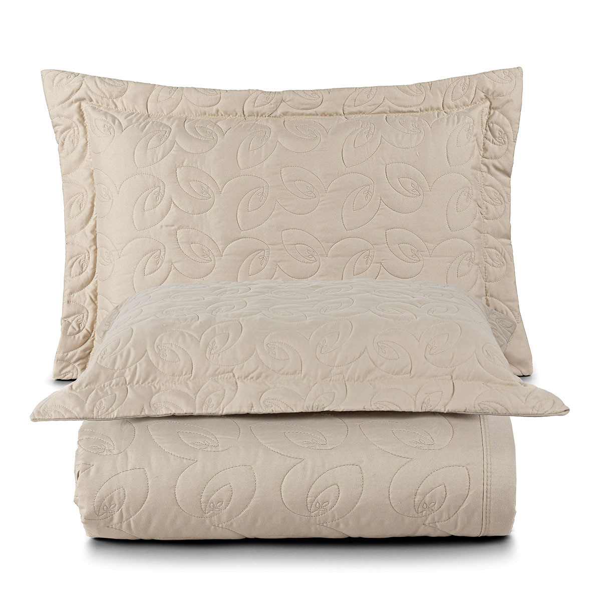 Kit Cobre Leito Colcha Desirée Queen Bordado Micropercal 200 Fios 3 Peças - Bege