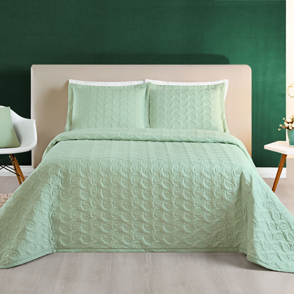 Kit Cobre Leito Colcha Desirée Queen Bordado Micropercal 200 Fios 3 Peças - Verde