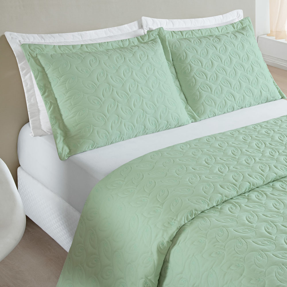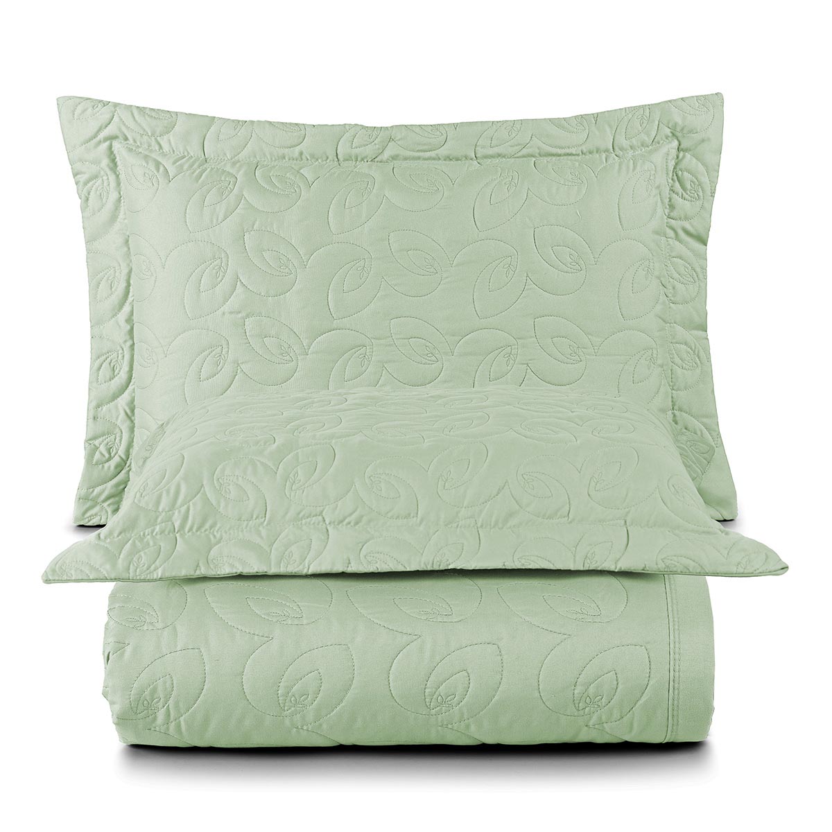Kit Cobre Leito Colcha Desirée King Bordado Micropercal 200 Fios 3 Peças - Verde