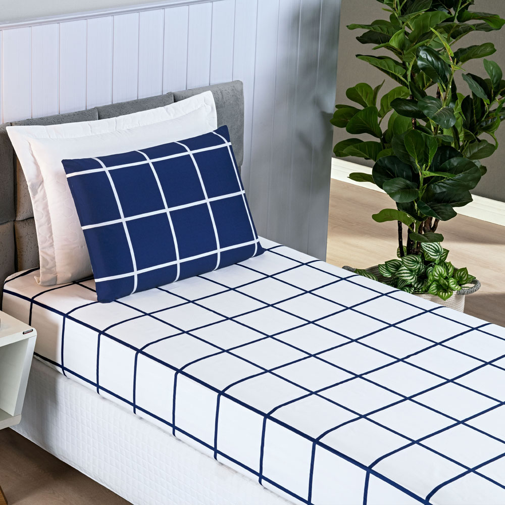 Jogo Cama Lençol Brooklyn Solteiro Quadriculado Micropercal 200 Fios 2 Peças - Azul Marinho