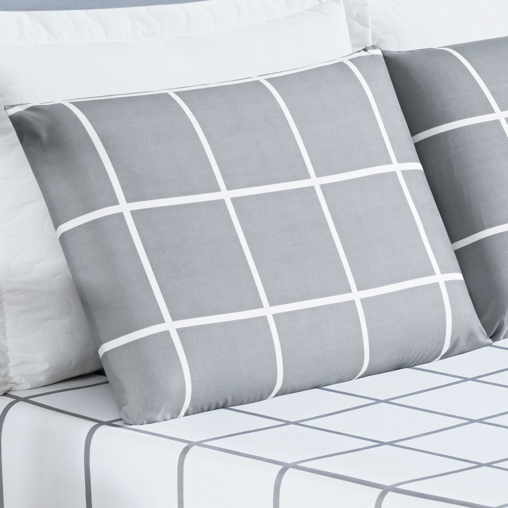 Jogo Cama Lençol Brooklyn King Quadriculado Micropercal 200 Fios 3 Peças - Cinza