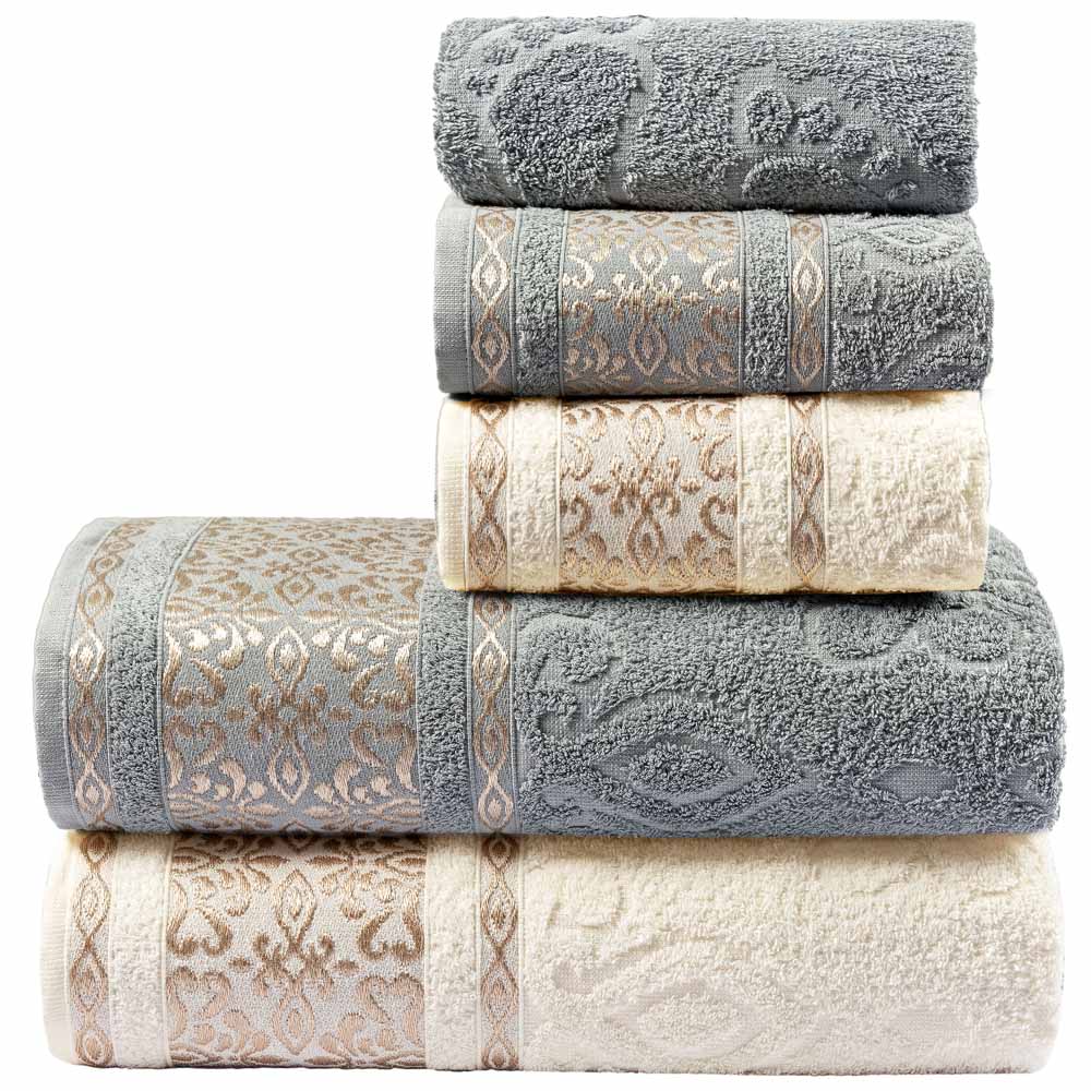 Jogo de Banho Toalhas Malau Decorado Algodão 5 Peças - Cinza e Palha