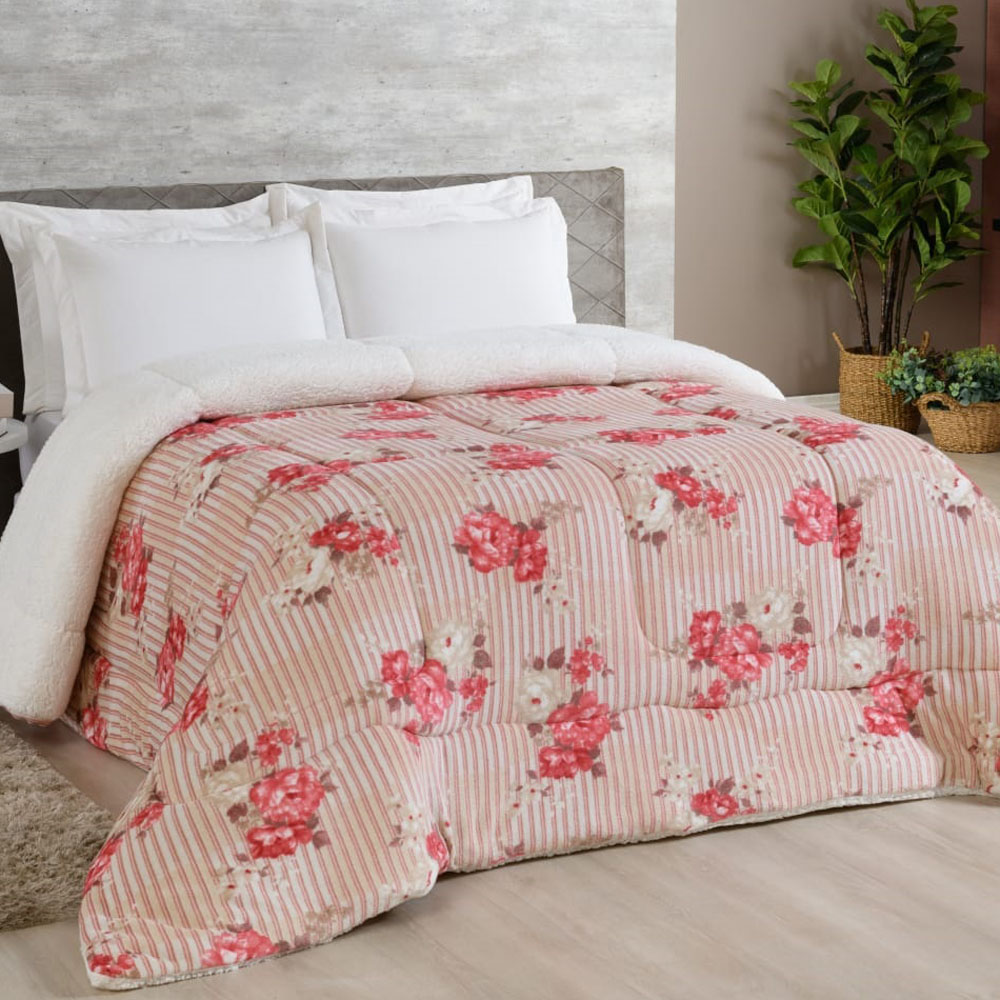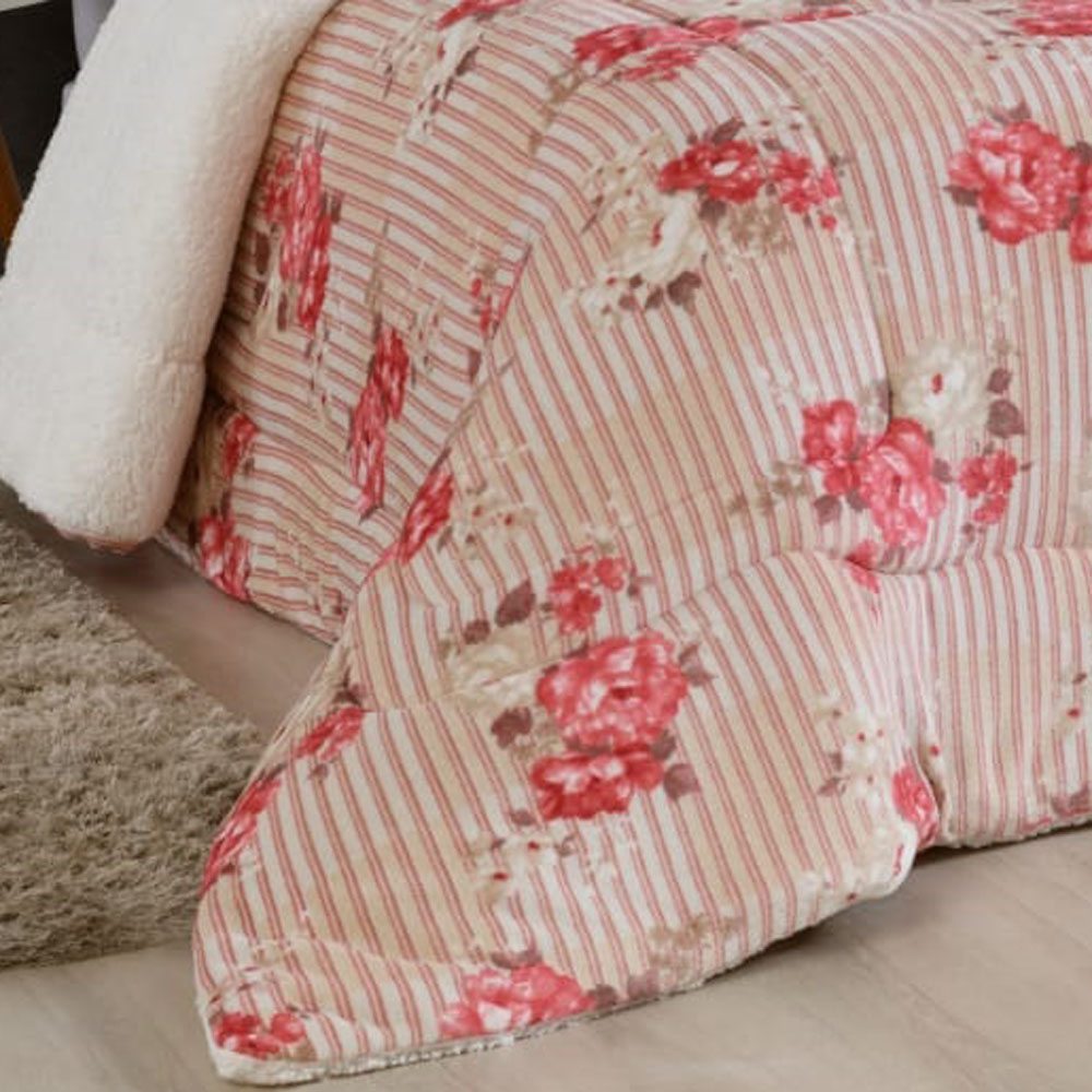 Coberdrom Robust Queen Manta Soft Sherpa Lã de Carneiro Pesado Grosso 1 Peça - Vermelho Listrado Florido