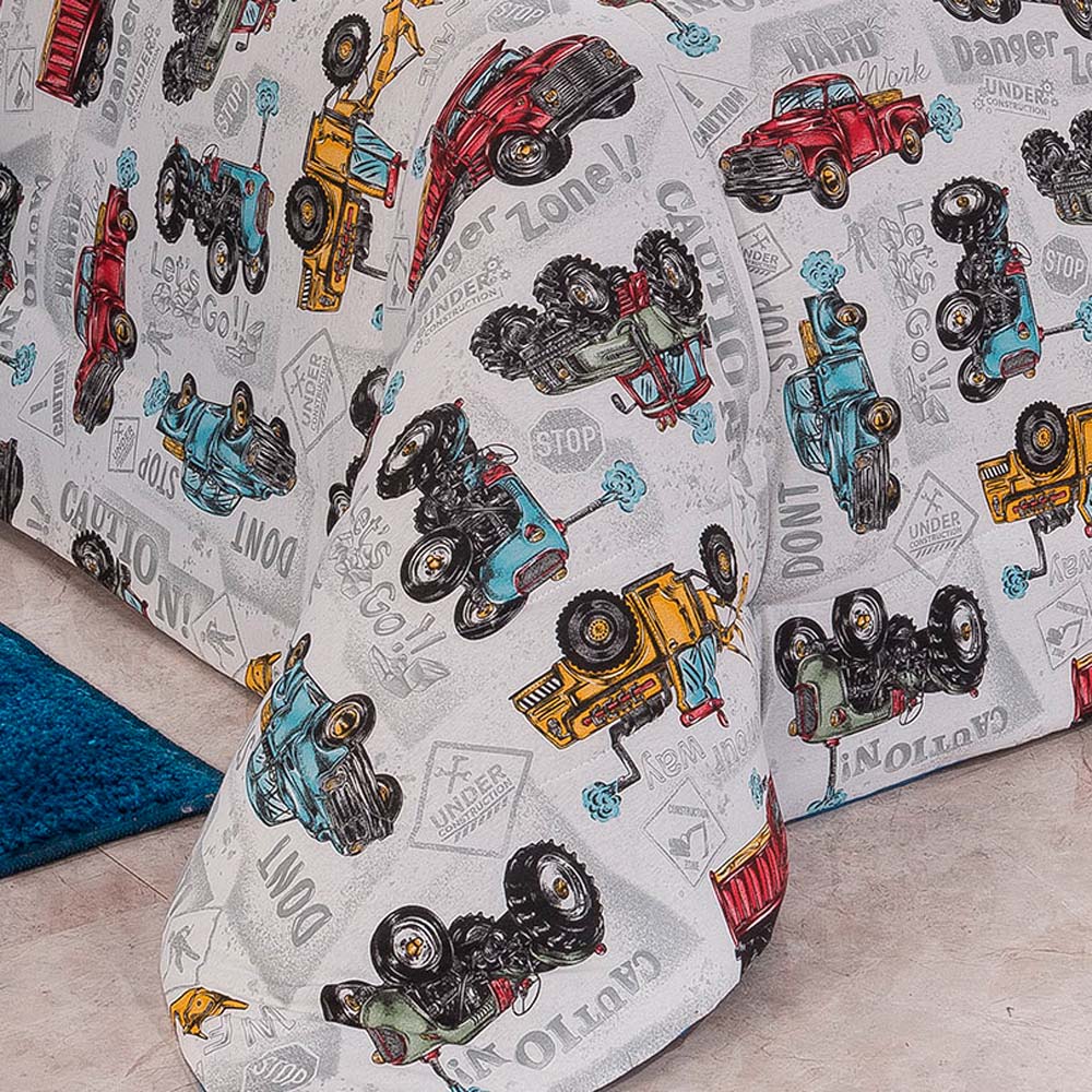 Edredom Diverkids Solteiro Infantil Malha Estampada 1 Peça - Carrinhos Azul