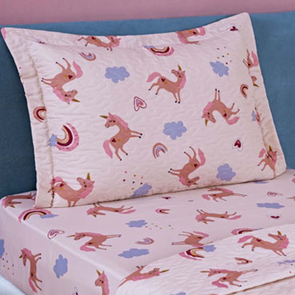 Kit Cobre Leito Colcha Solteiro Infantil Fantasy Dupla Face Microfibra 2 Peças - Unicórnio - Rosê