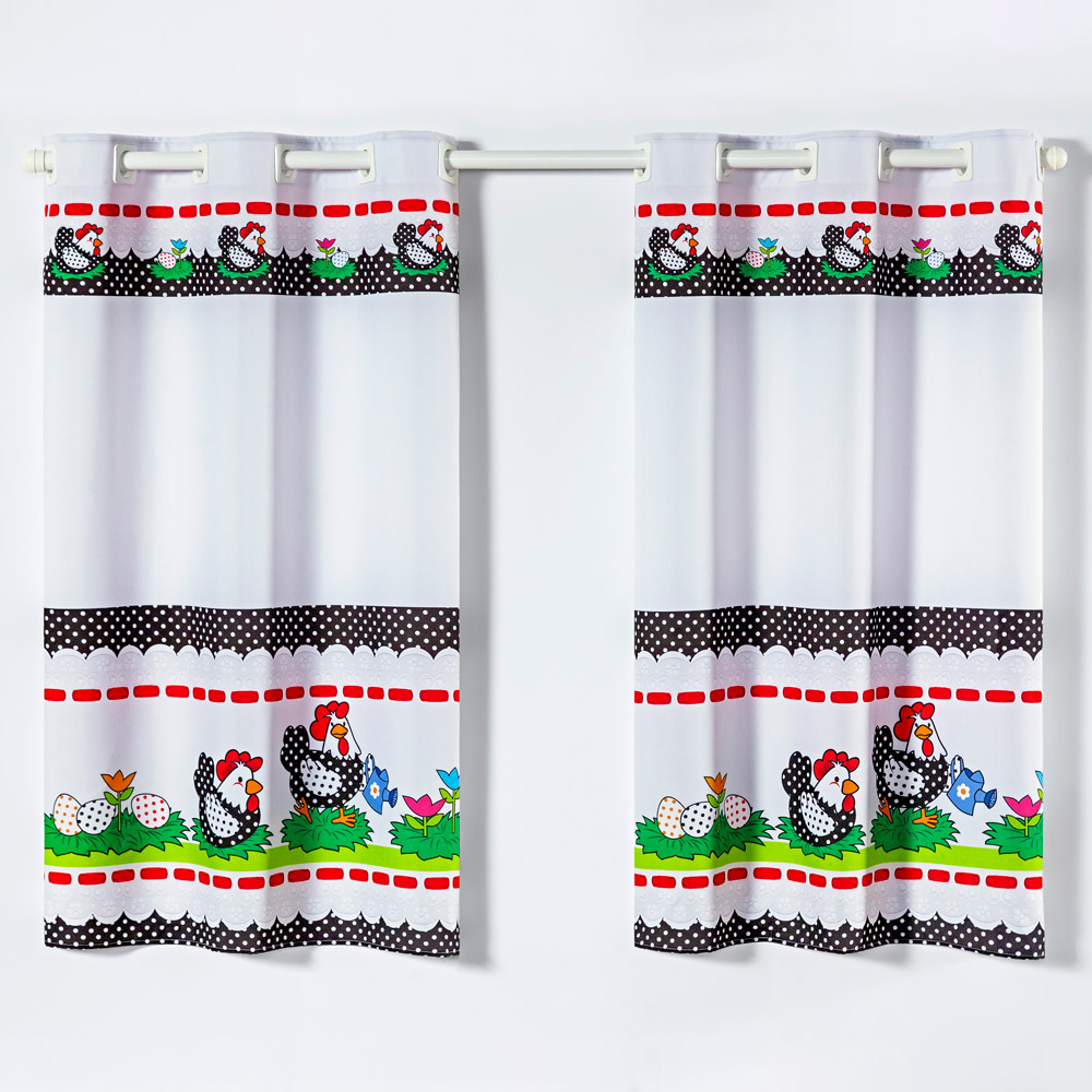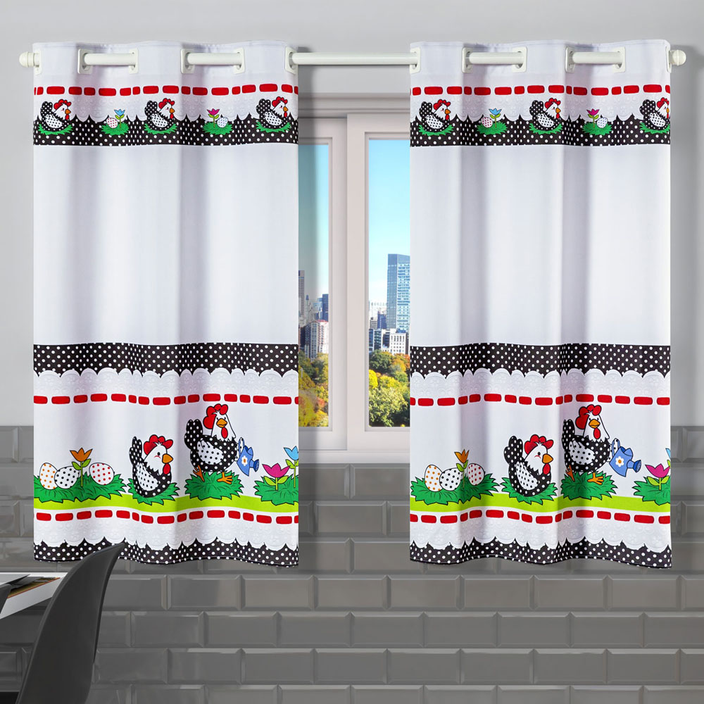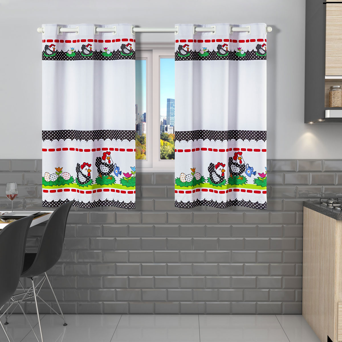 Cortina Gourmet Varão Cozinha Tecido Oxford 2,00m X 1,30m - Galinha Branca