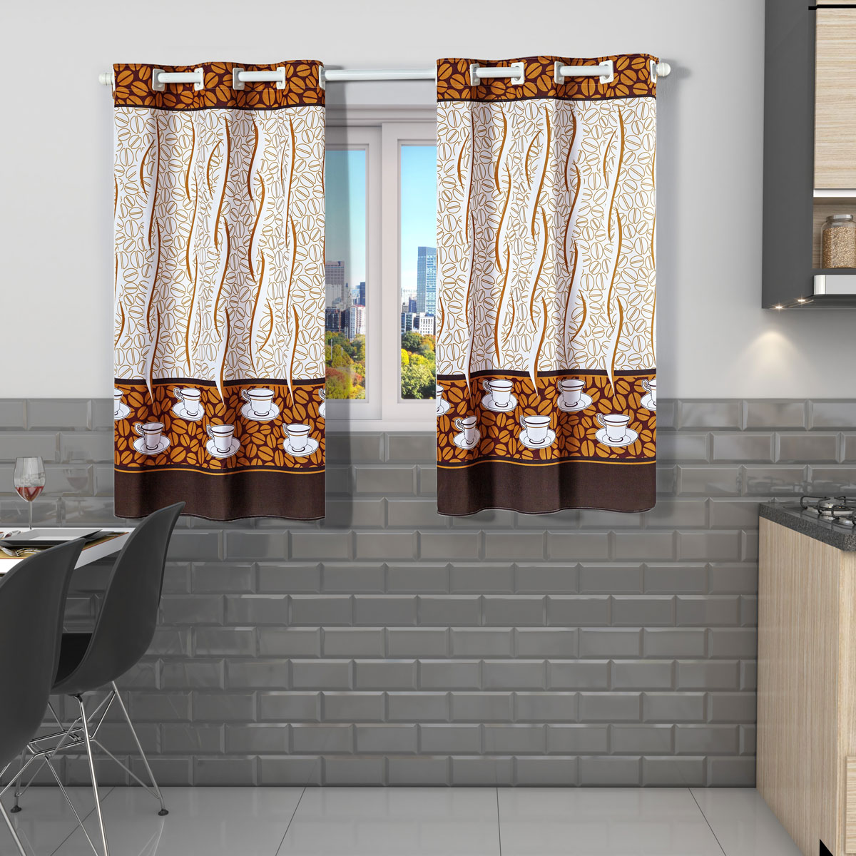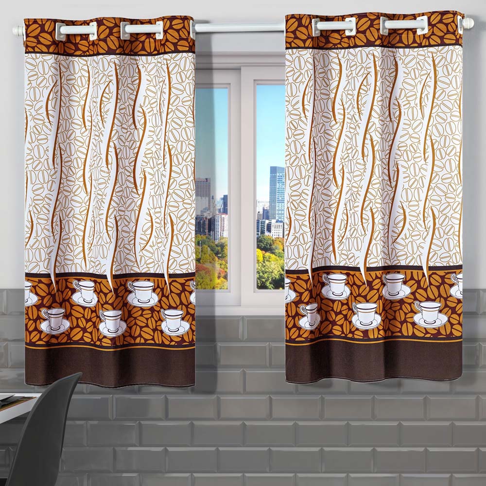 Cortina Gourmet Varão Cozinha Tecido Oxford 2,00m X 1,30m - Xícara Café Tabaco