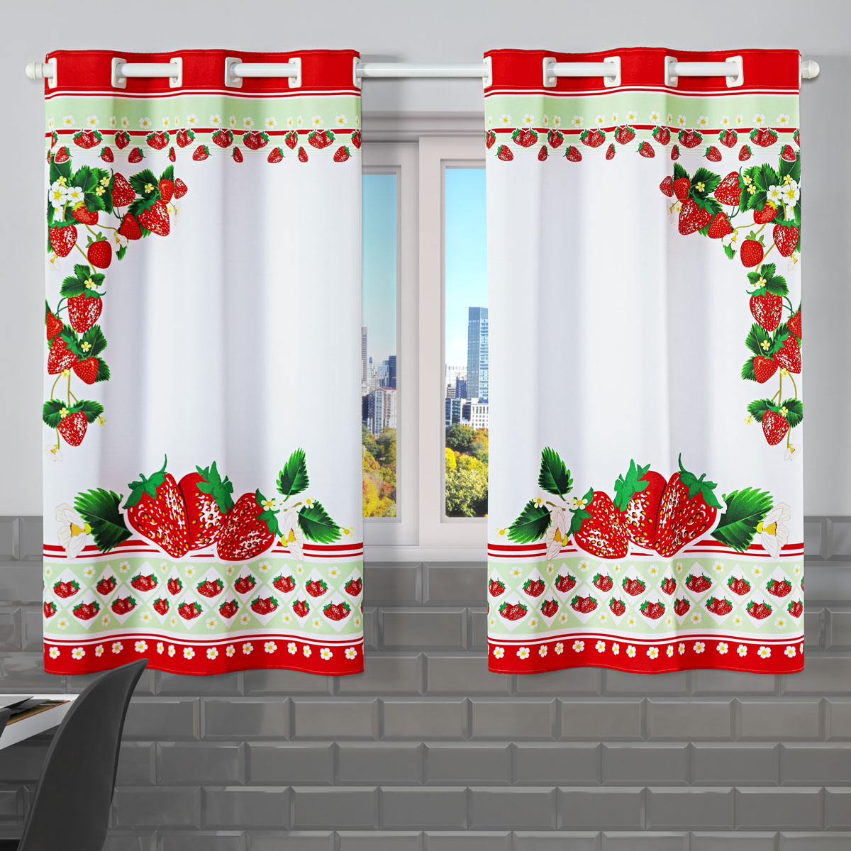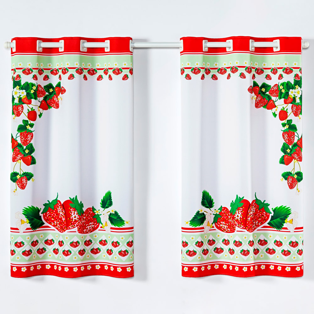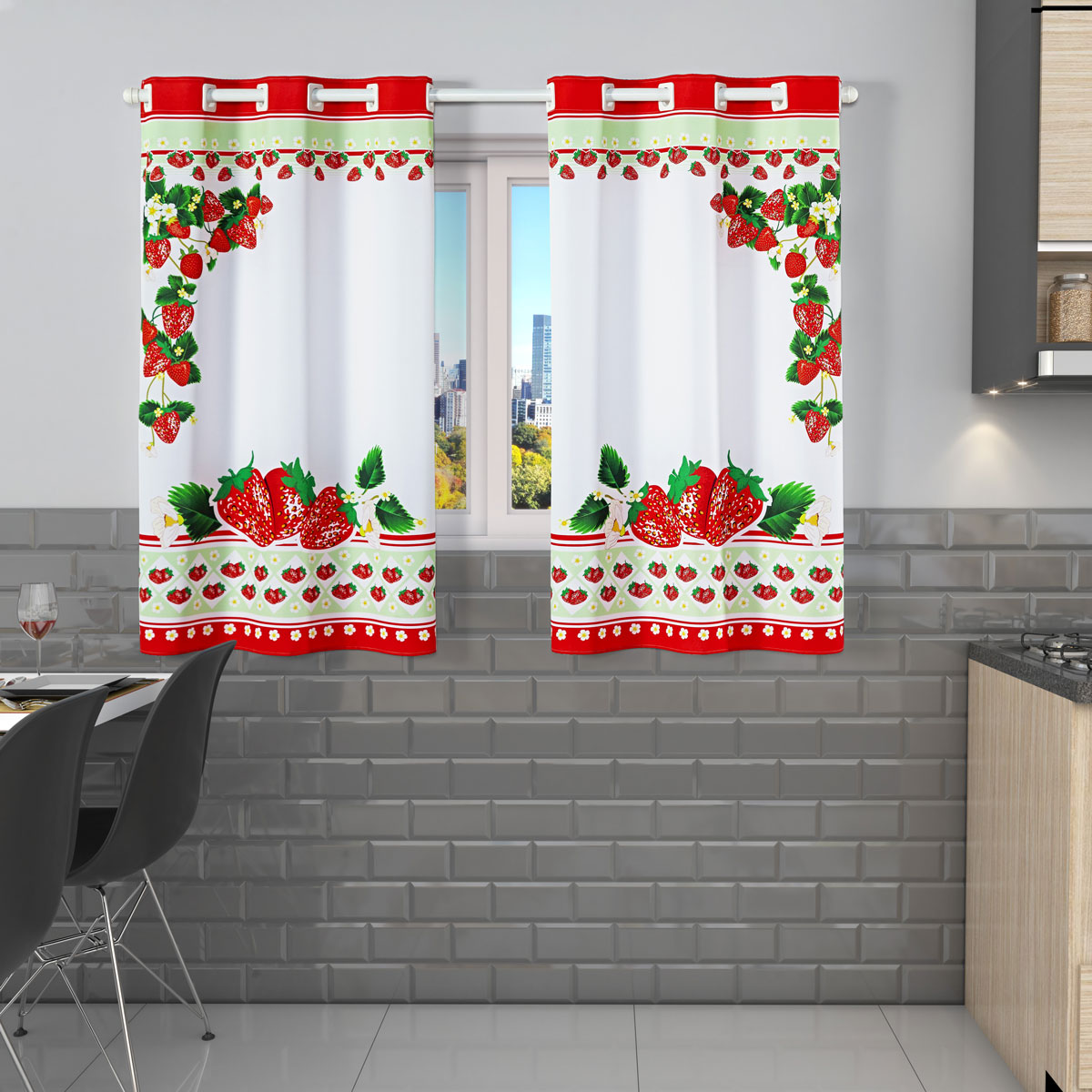 Cortina Gourmet Varão Cozinha Tecido Oxford 2,00m X 1,30m - Morangos Vermelha