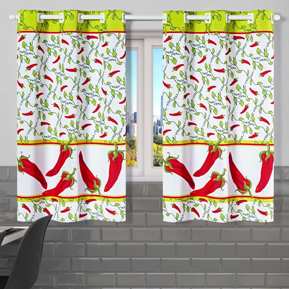 Cortina Gourmet Varão Cozinha Tecido Oxford 2,00m X 1,30m - Pimenta Verde