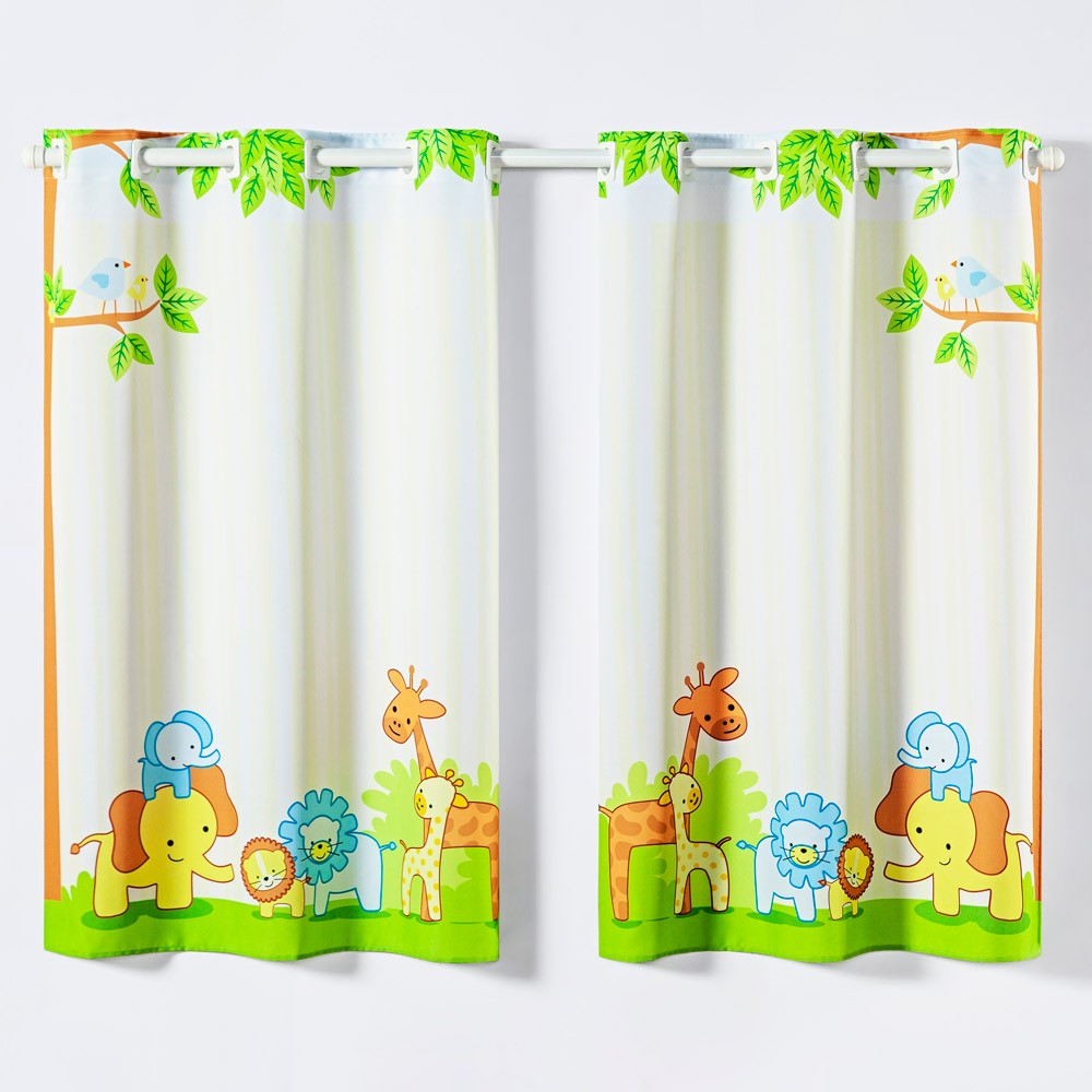 Cortina Kids Infantil Varão Tecido Oxford 2,00m X 1,30m - Bichinhos Safari Verde