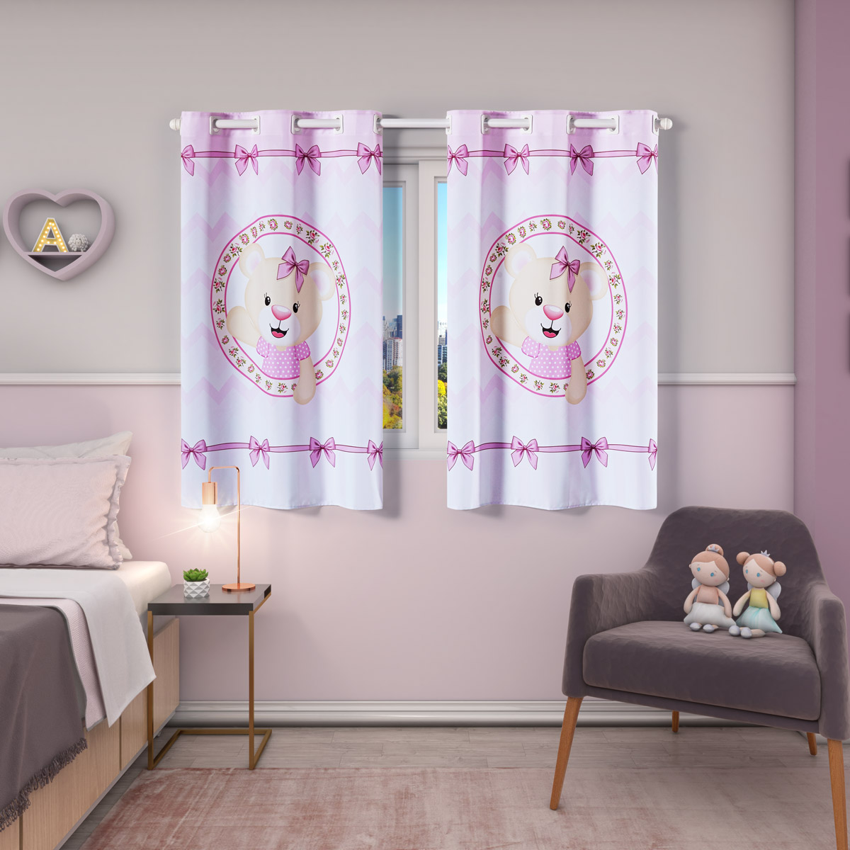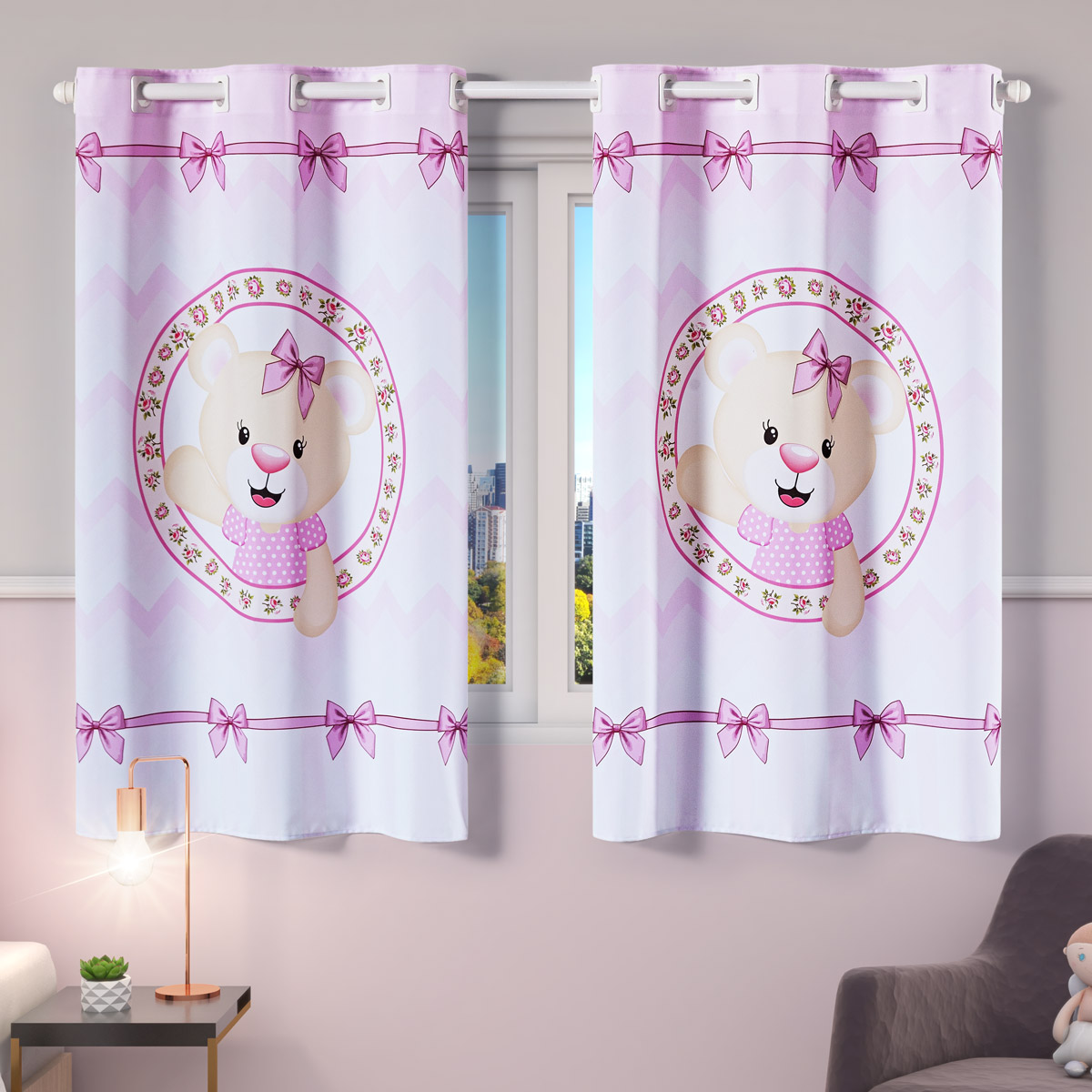 Cortina Kids Infantil Varão Tecido Oxford 2,00m X 1,30m - Ursinha Rosa