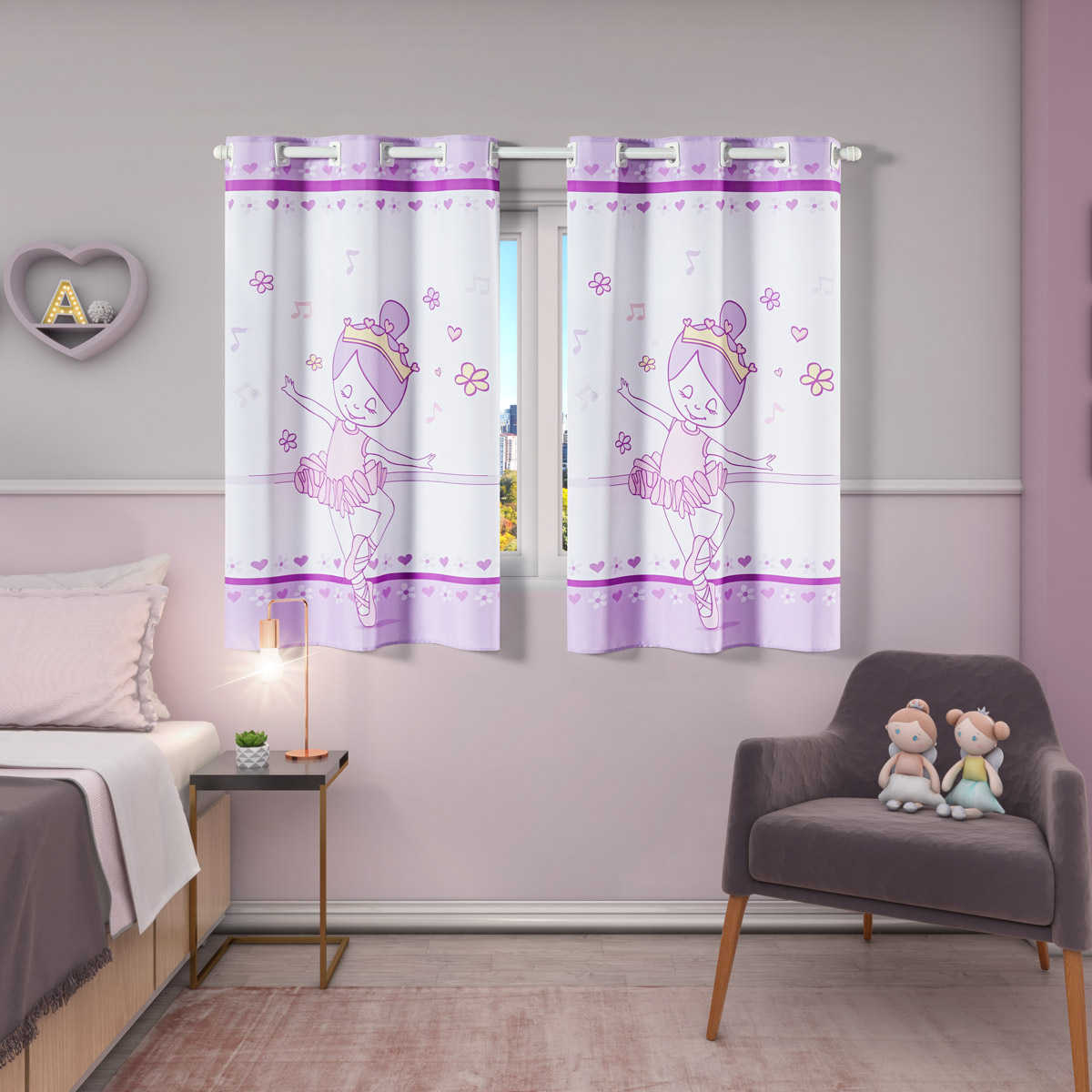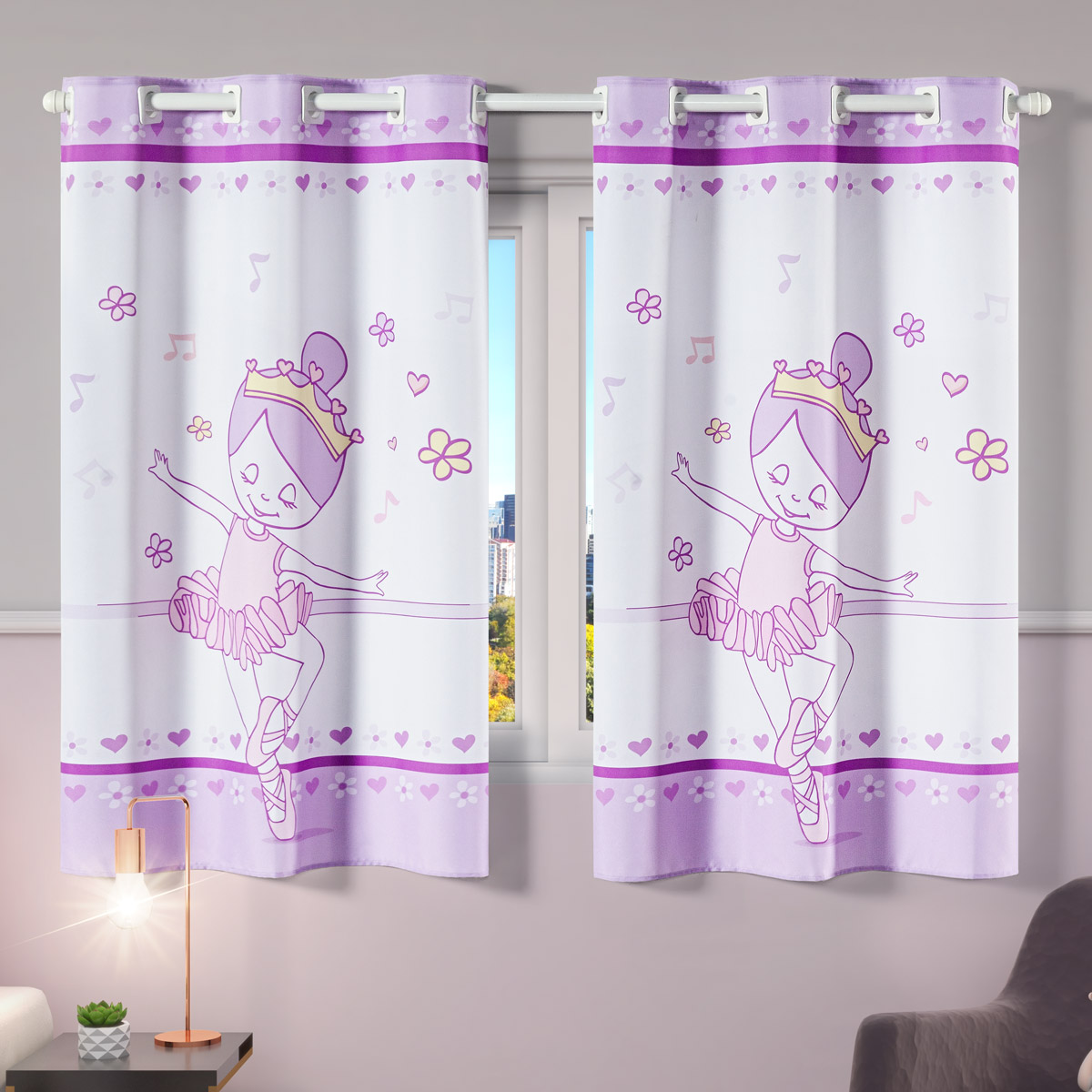 Cortina Kids Infantil Varão Tecido Oxford 2,00m X 1,30m - Bailarina Lilás