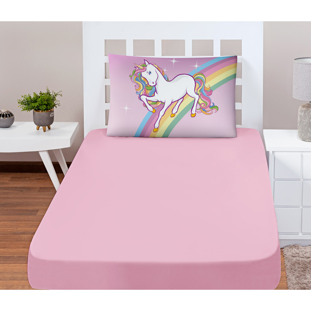 Jogo Cama Lençol Shine Solteiro Microfibra 180 Fios 2 Peças - Unicórnio Rosa