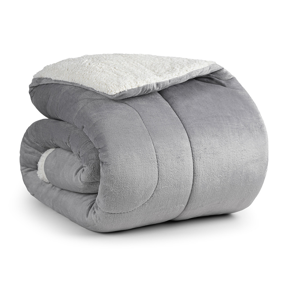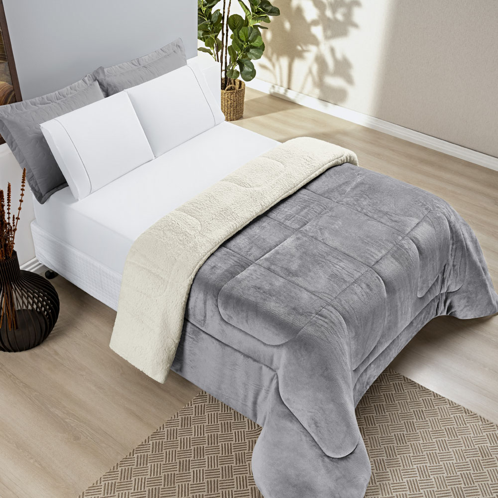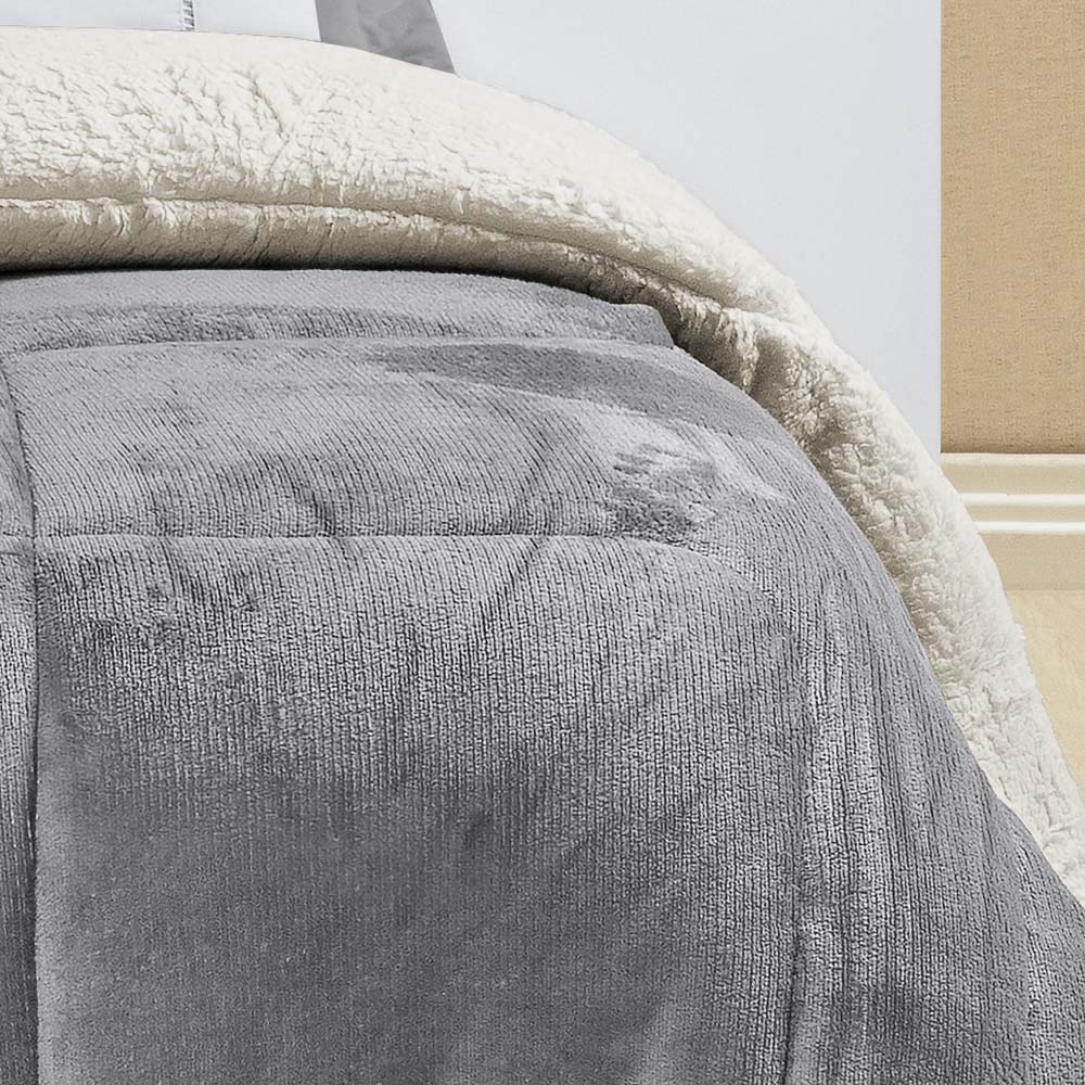 Coberdrom Apollo King Sherpa Pele de Carneiro + Manta Flannel - Cinza