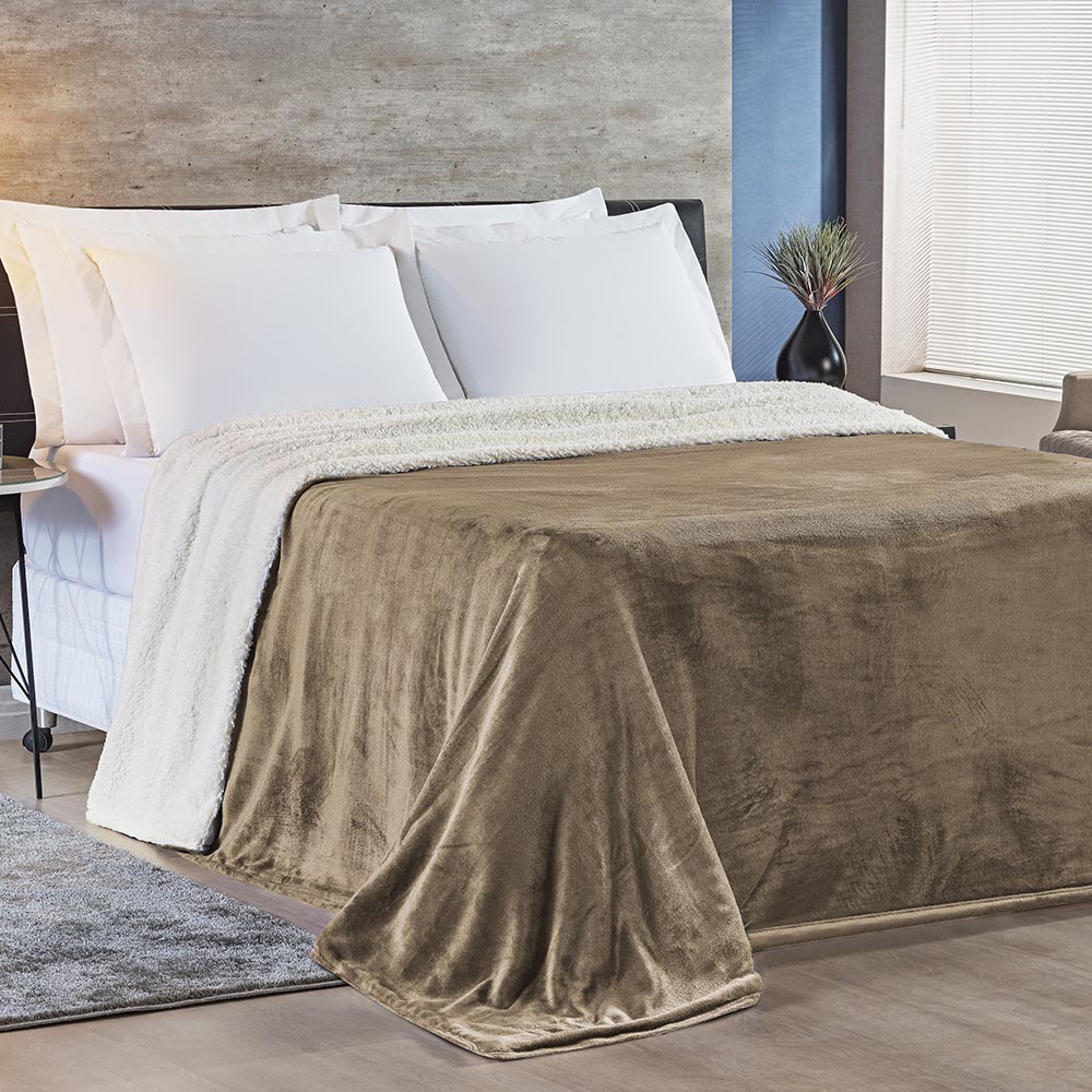 Cobertor Fênix King Sherpa Pele de Carneiro + Mantinha Flannel - Bege