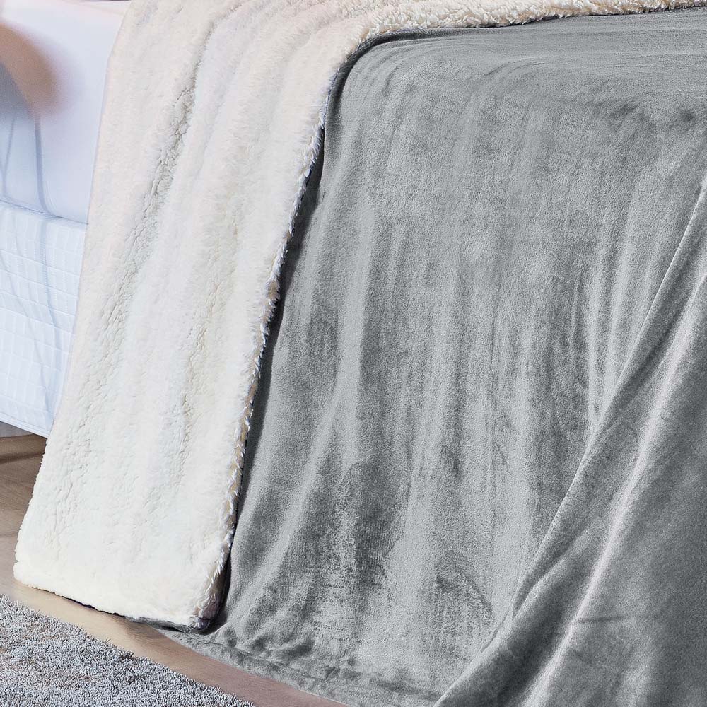 Cobertor Fênix King Sherpa Pele de Carneiro + Mantinha Flannel - Cinza