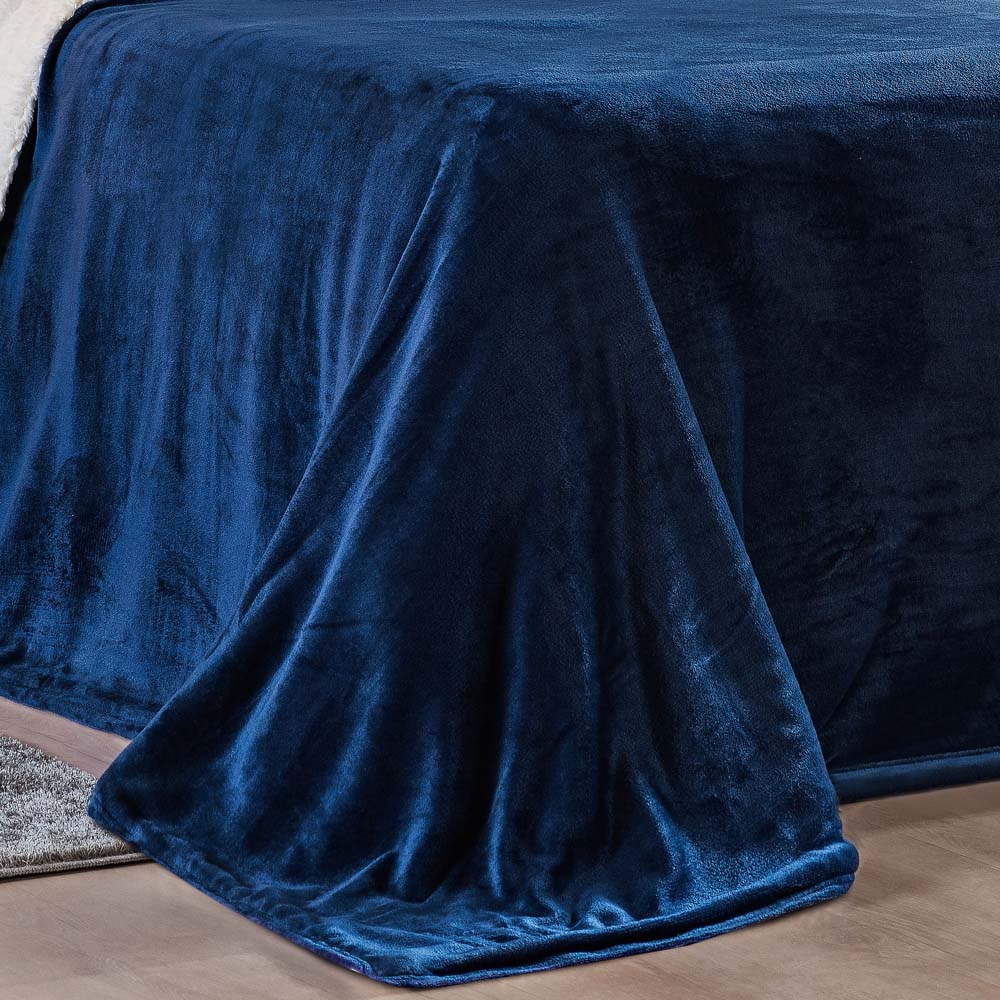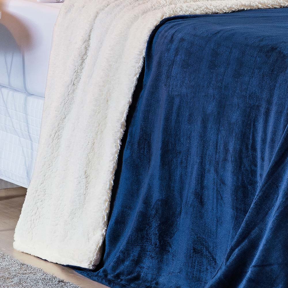 Cobertor Fênix King Sherpa Pele de Carneiro + Mantinha Flannel - Azul Marinho