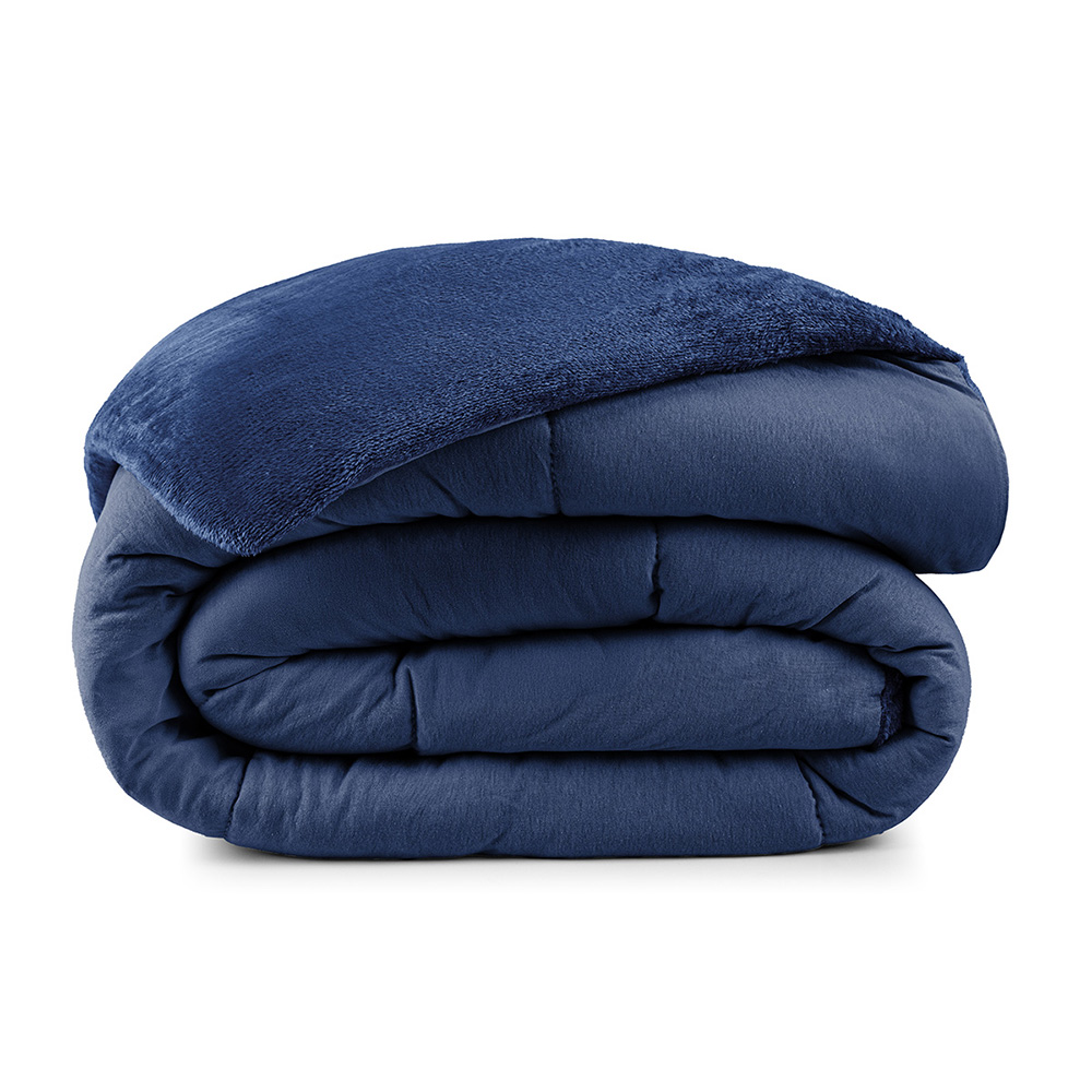 Coberdrom Allure Queen Dupla Face Manta Plush + Malha - Azul Marinho