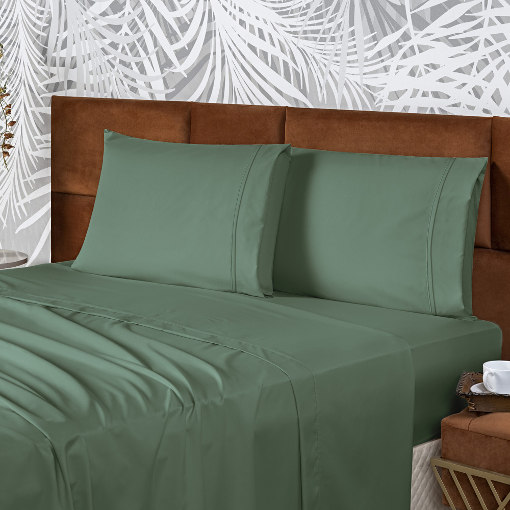 Jogo Cama Lençol Essencial Casal Micropercal 200 Fios 4 Peças - Verde Esmeralda