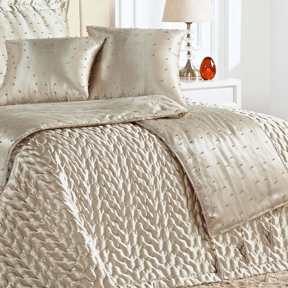 Kit Cobre Leito Colcha Fascínio Queen Cetim c/ Tule de Pérola 10 Peças - Bronze