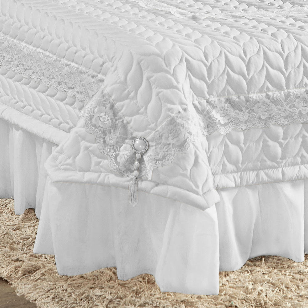 Kit Colcha Madalene Queen Micropercal 200 Fios 5 Peças - Branco