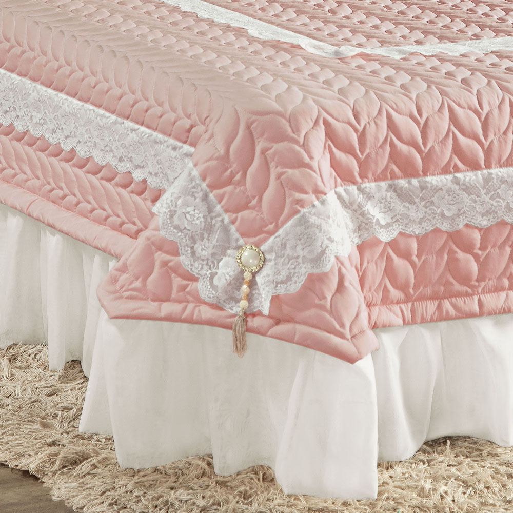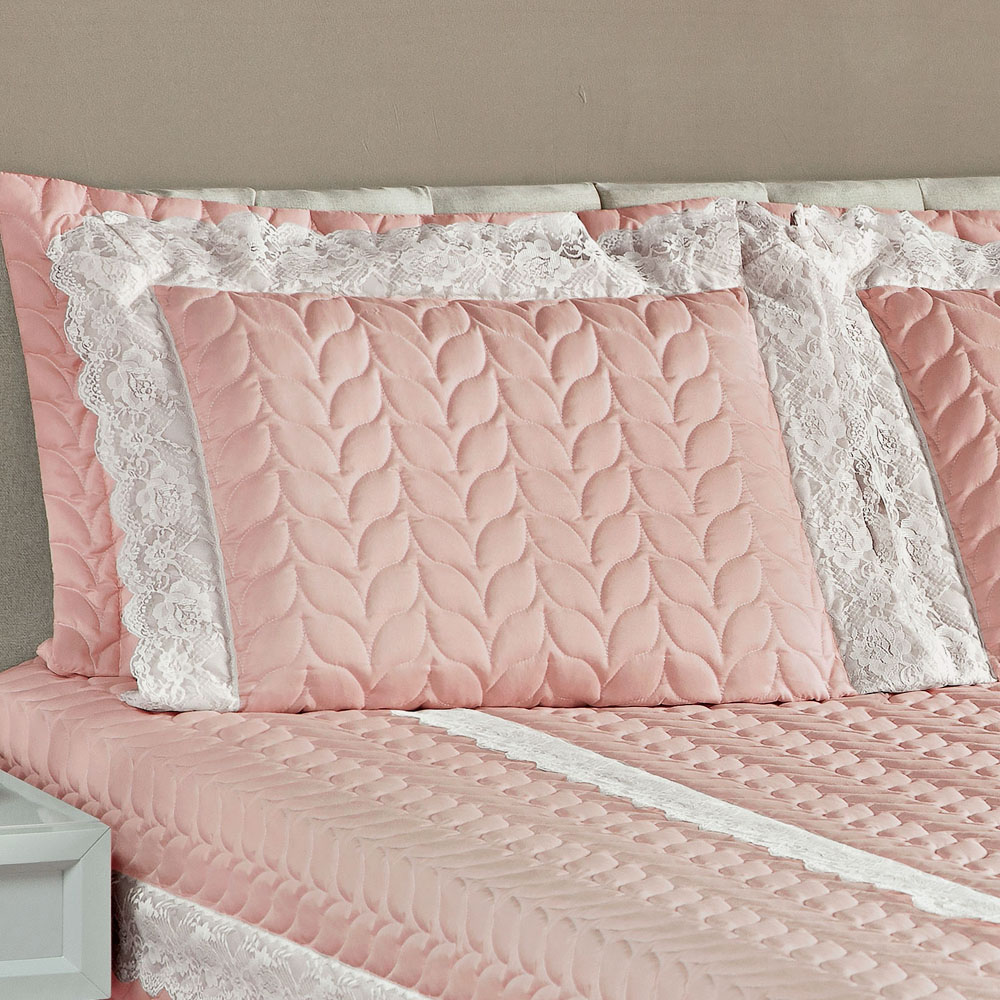 Kit Colcha Madalene Queen Micropercal 200 Fios 5 Peças - Rosê
