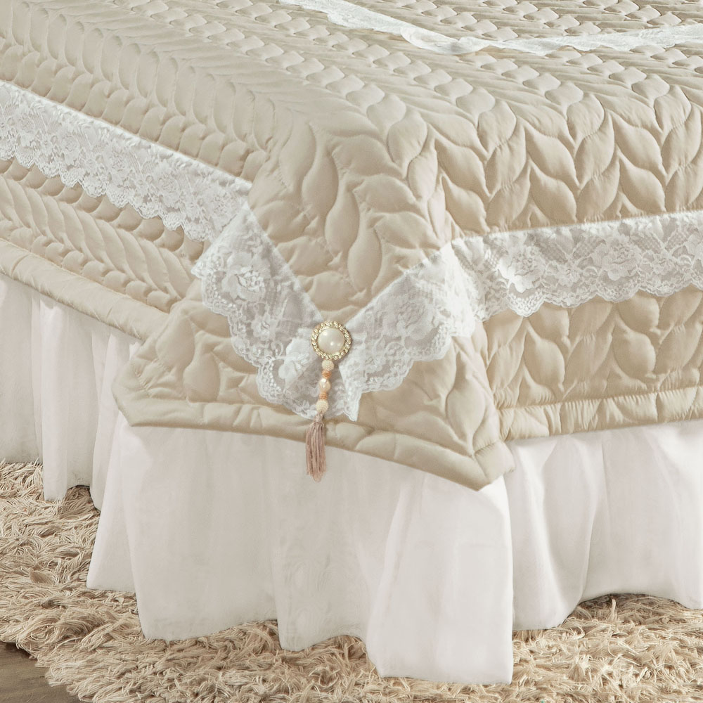 Kit Colcha Madalene Super King Micropercal 200 Fios 5 Peças - Bege