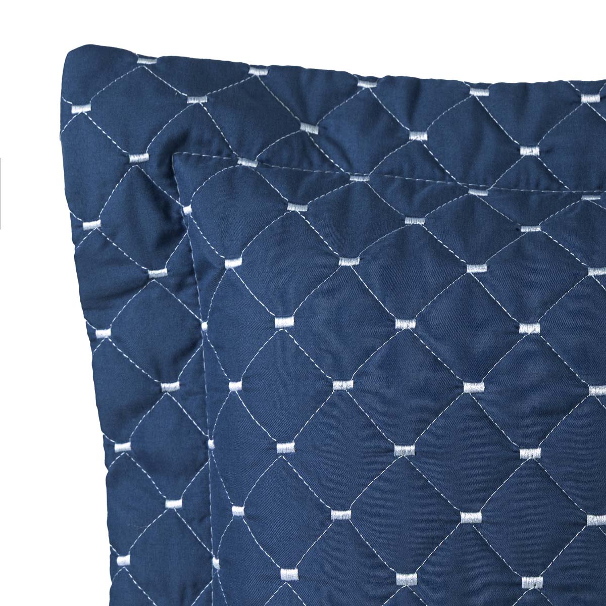 Kit Cobre Leito Colcha Vênus Queen Dupla Face Micropercal 200 Fios Liso 3 Peças - Azul Marinho