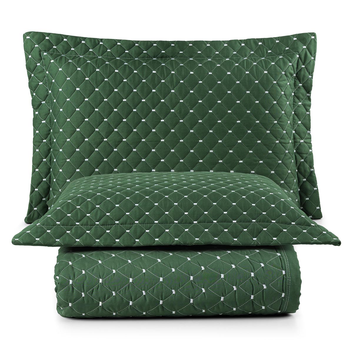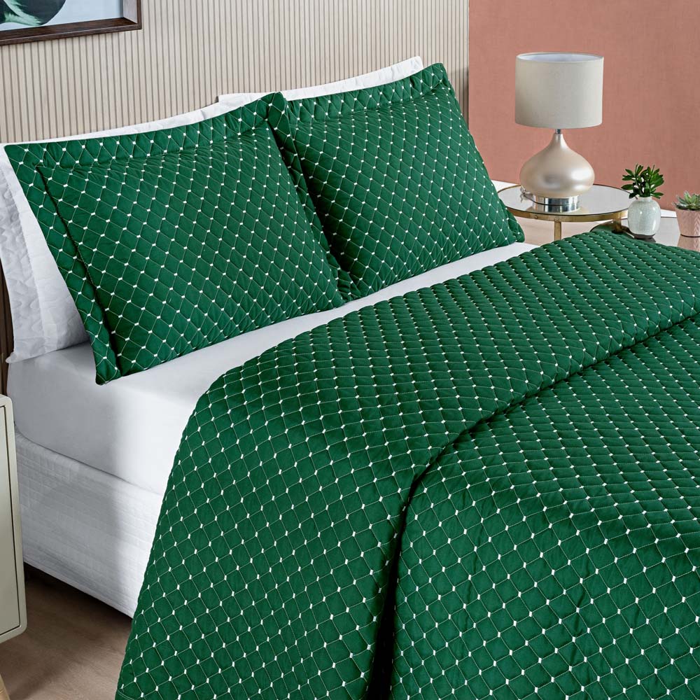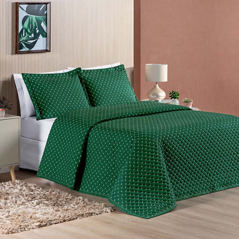 Kit Cobre Leito Colcha Vênus Queen Dupla Face Micropercal 200 Fios Liso 3 Peças - Verde Esmeralda