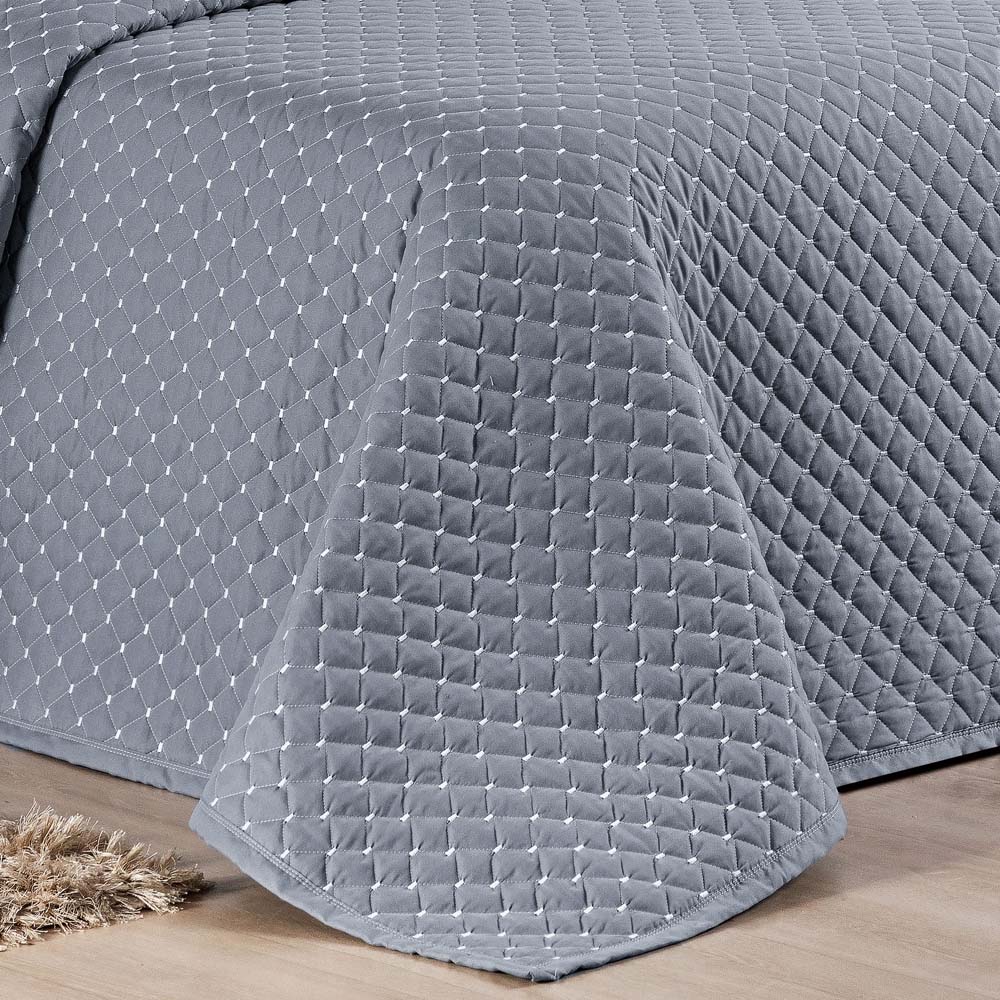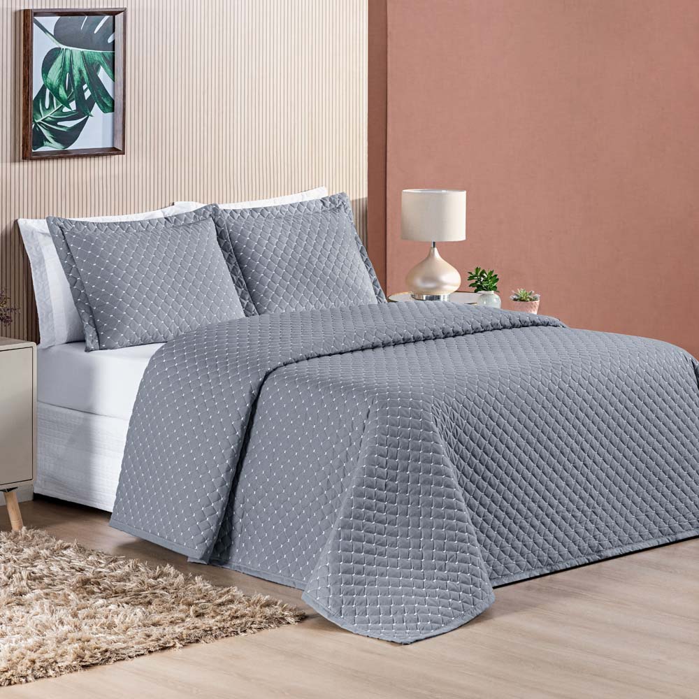 Kit Cobre Leito Colcha Vênus King Dupla Face Micropercal 200 Fios Liso 3 Peças - Cinza