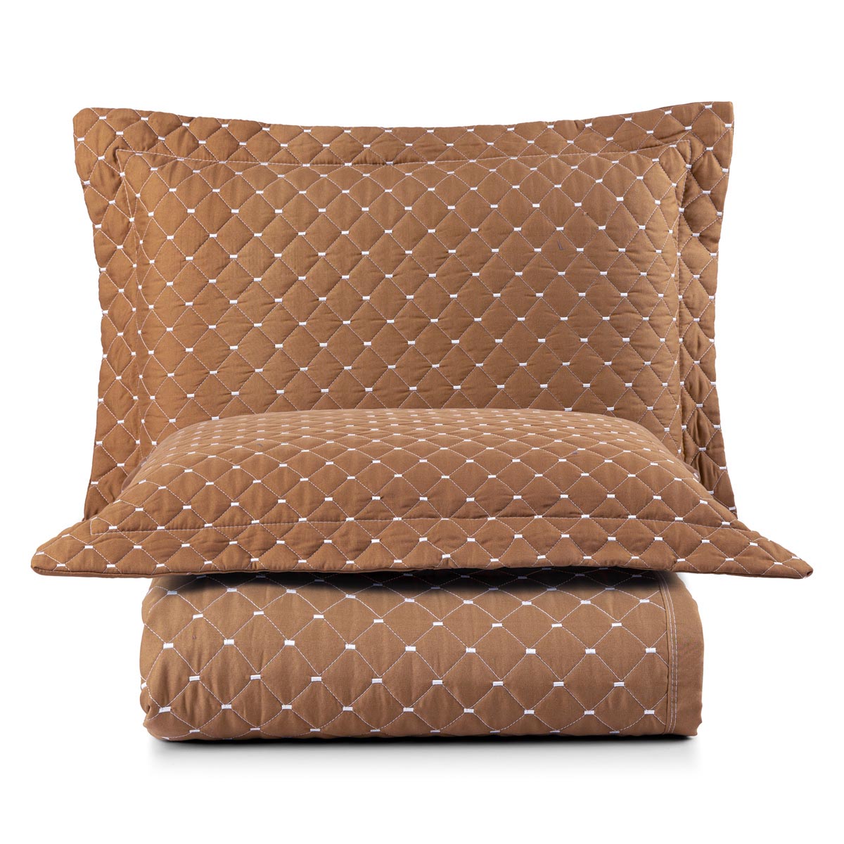 Kit Cobre Leito Colcha Vênus Casal Dupla Face Micropercal 200 Fios Liso 3 Peças - Terracota