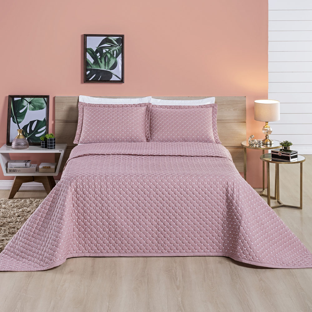 Kit Cobre Leito Colcha Vênus King Dupla Face Micropercal 200 Fios Liso 3 Peças - Rosê