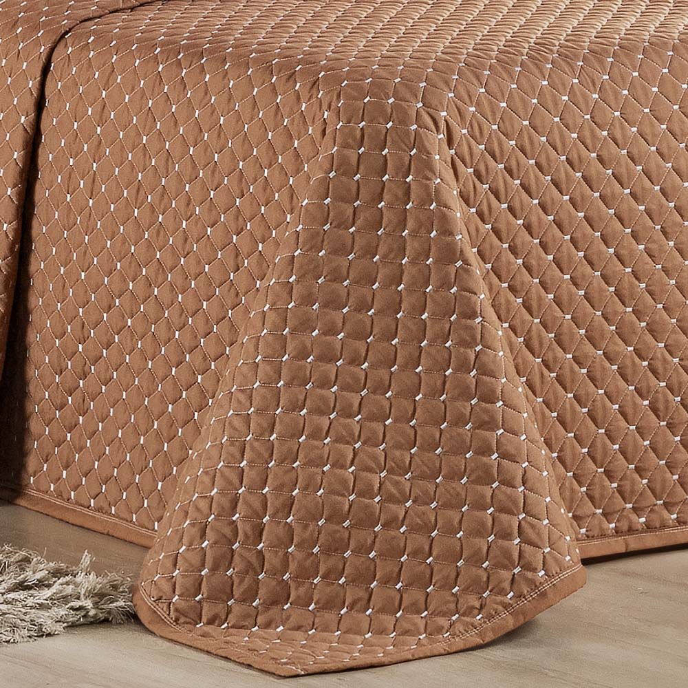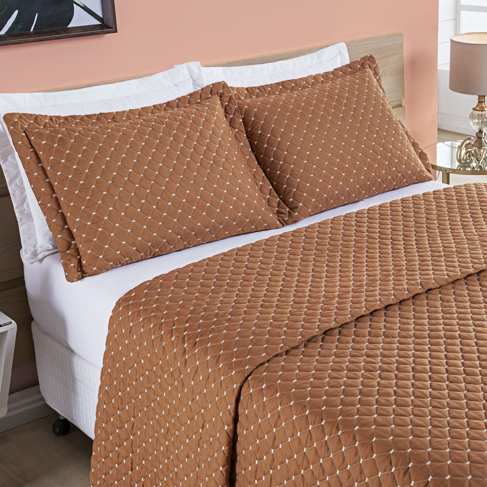 Kit Cobre Leito Colcha Vênus King Dupla Face Micropercal 200 Fios Liso 3 Peças - Terracota