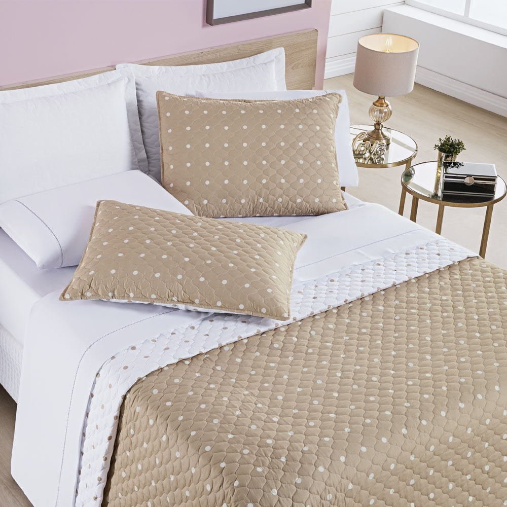 Kit Cobre Leito Colcha Meggy Poá Casal Padrão Dupla Face Micropercal 200 Fios 3 Peças - Bege
