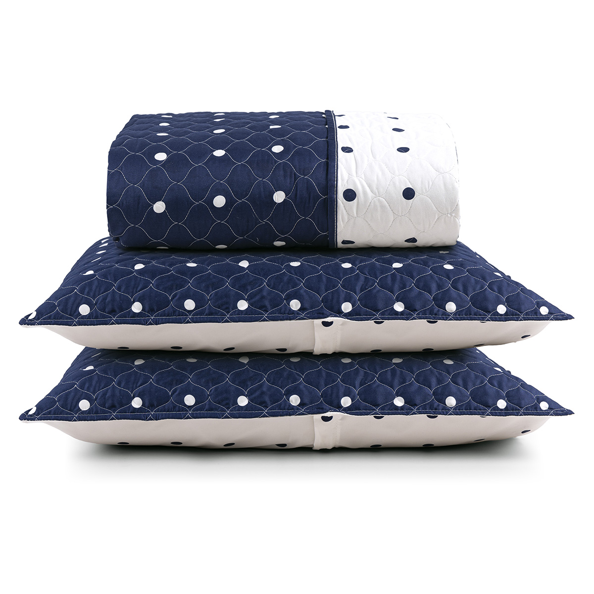 Kit Cobre Leito Colcha Meggy Poá Queen Dupla Face Micropercal 200 Fios 3 Peças - Azul Marinho