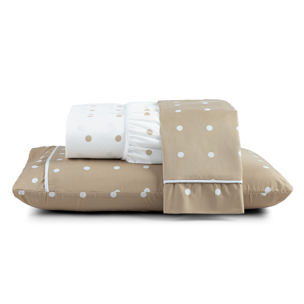 Jogo Cama Lençol Meggy Poá King Bolinhas Micropercal 200 Fios 3 Peças - Bege