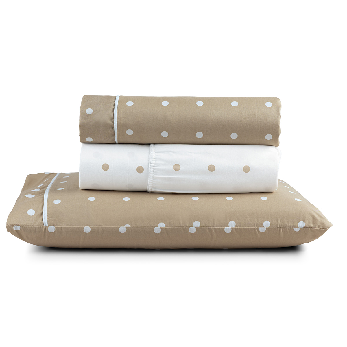 Jogo Cama Lençol Meggy Poá Solteiro Bolinhas Micropercal 200 Fios 3 Peças - Bege
