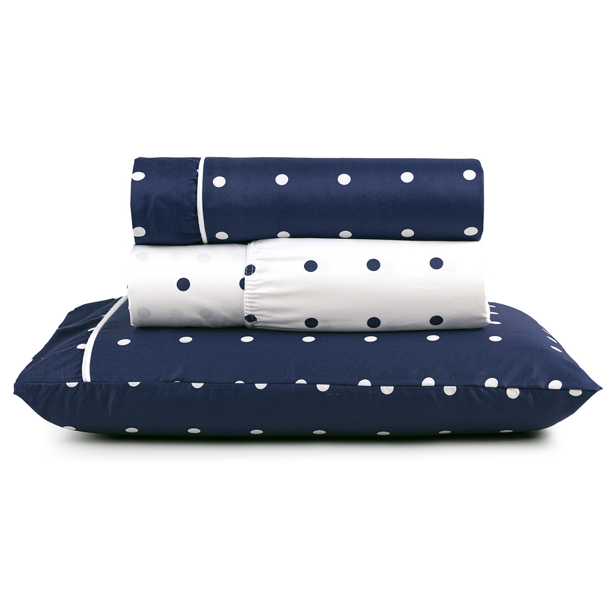 Jogo Cama Lençol Meggy Poá Solteiro Bolinhas Micropercal 200 Fios 3 Peças - Azul Marinho