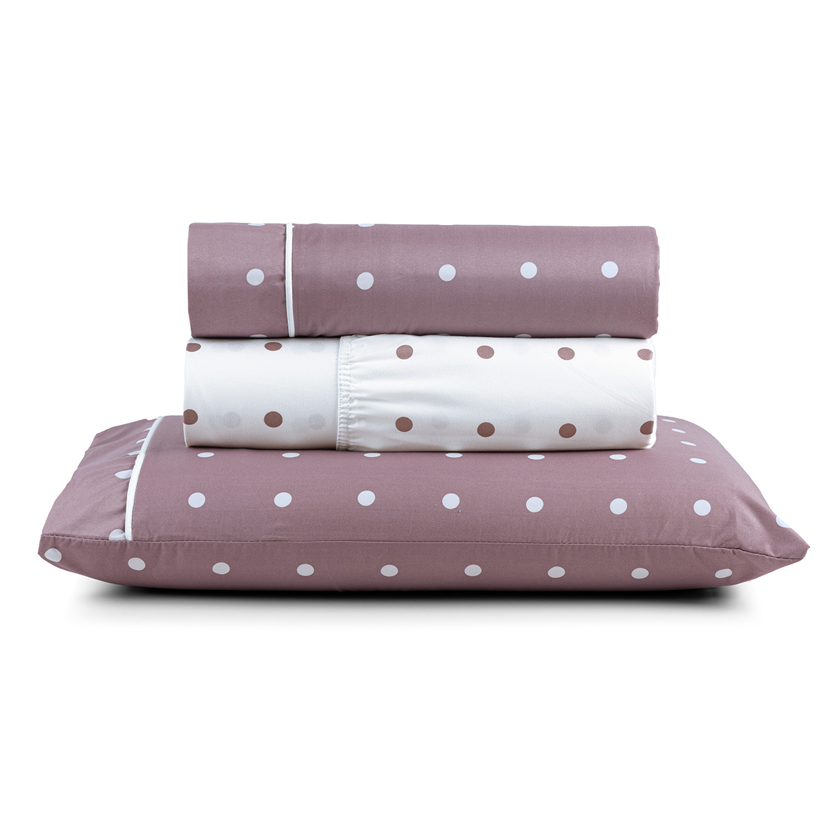 Jogo Cama Lençol Meggy Poá Solteiro Bolinhas Micropercal 200 Fios 3 Peças - Rosê