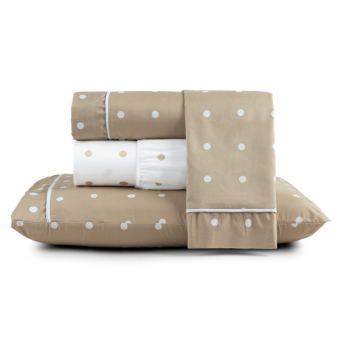 Jogo Cama Lençol Meggy Poá Queen Bolinhas Micropercal 200 Fios 4 Peças - Bege