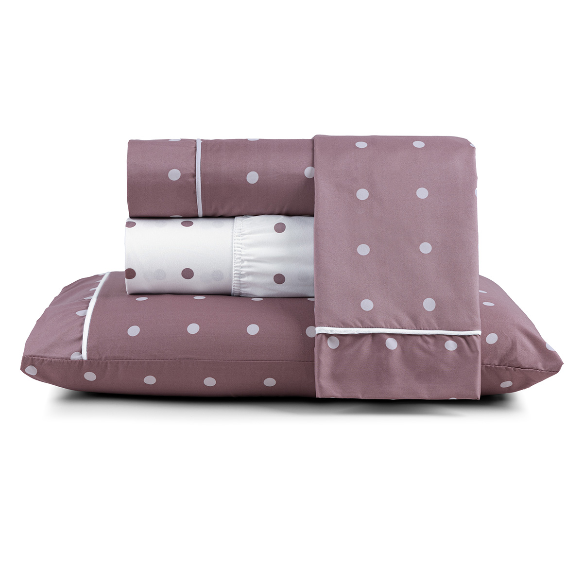 Jogo Cama Lençol Meggy Poá King Bolinhas Micropercal 200 Fios 4 Peças - Rosê