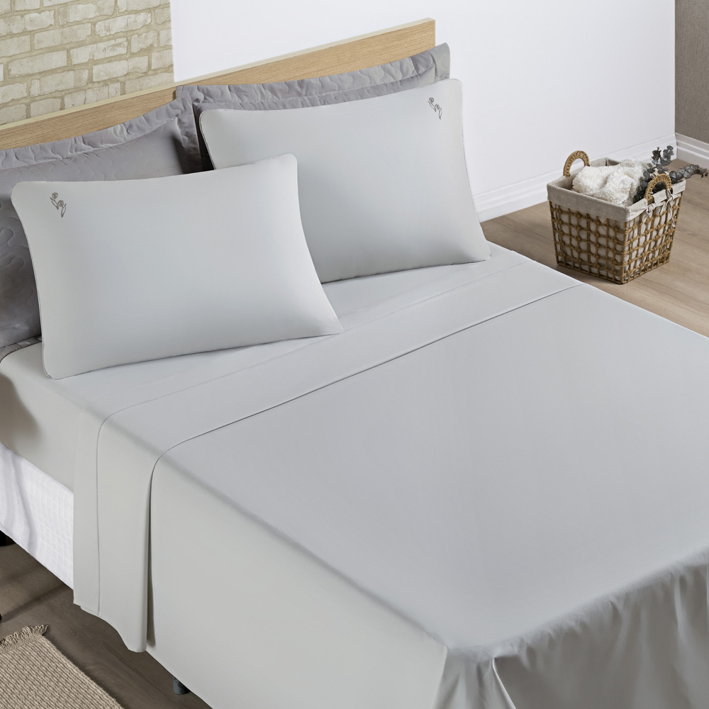 Jogo Cama Lençol Diana Casal Padrão Percal 200 Fios 100% Algodão 4 Peças - Cinza