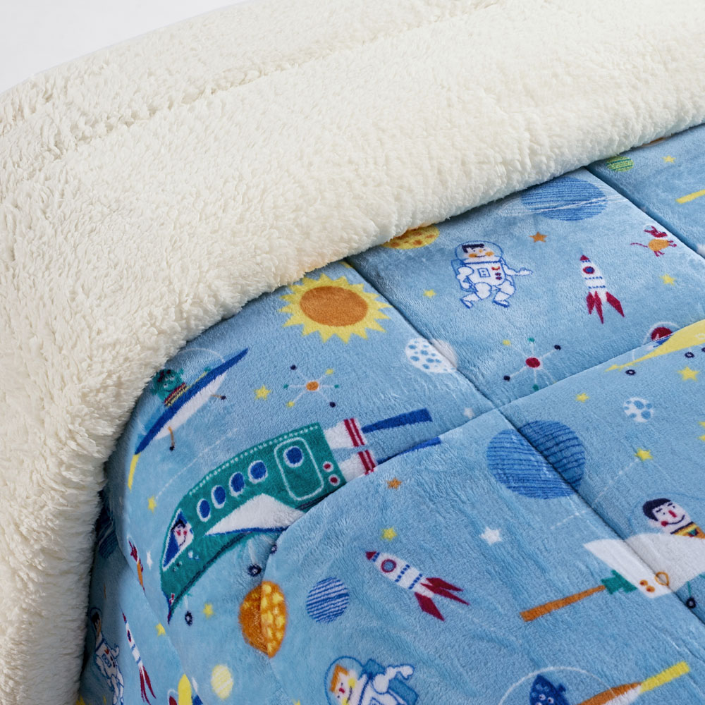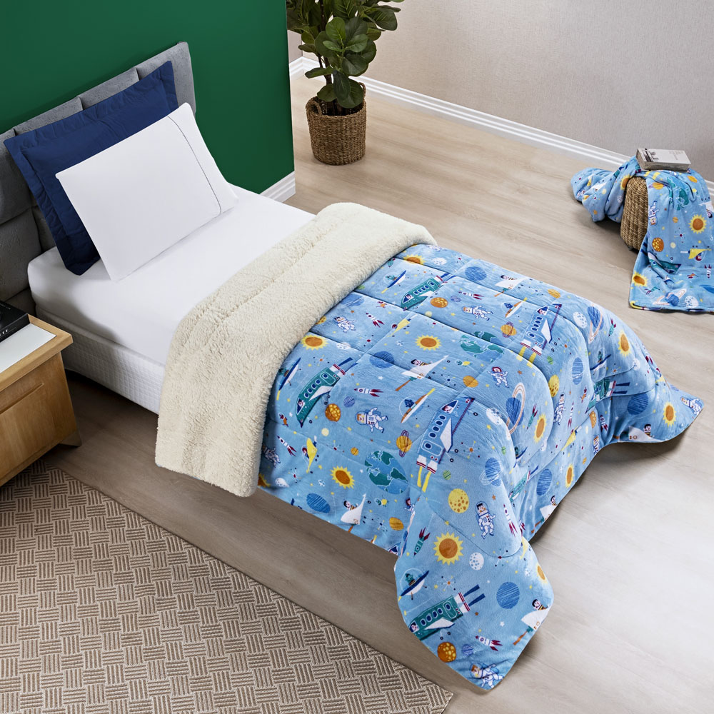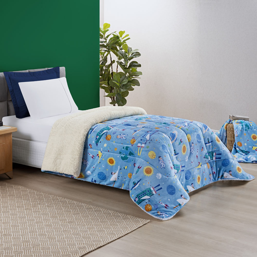 Coberdrom Cobertor Fantasy Solteiro Infantiil Sherpa Manta Toque Lã de Carneiro - Astronauta - Azul