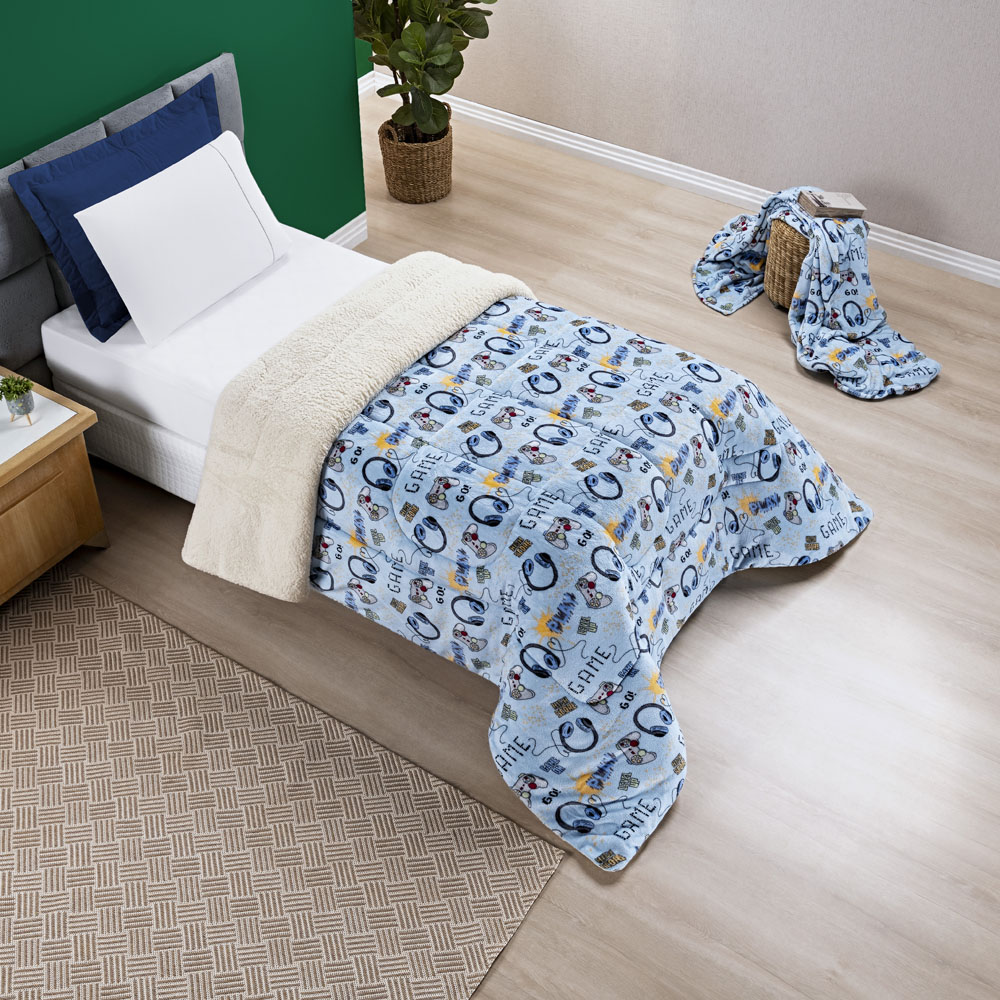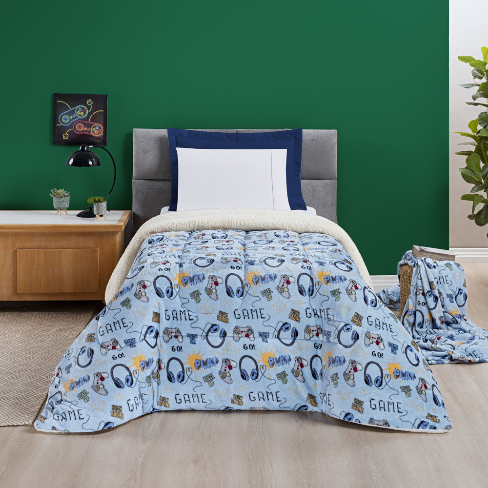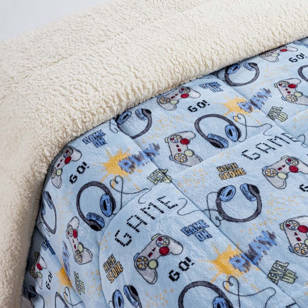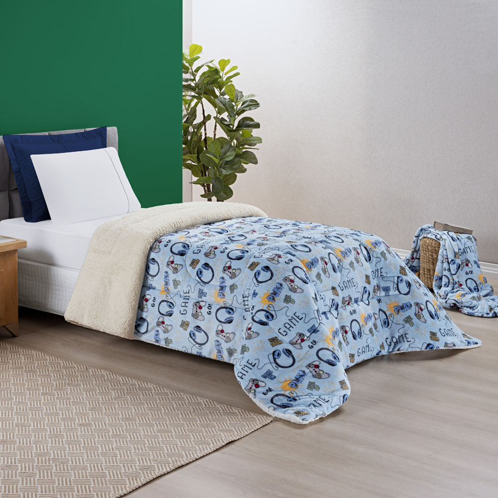 Coberdrom Cobertor Fantasy Solteiro Infantiil Sherpa Manta Toque Lã de Carneiro - Games - Azul