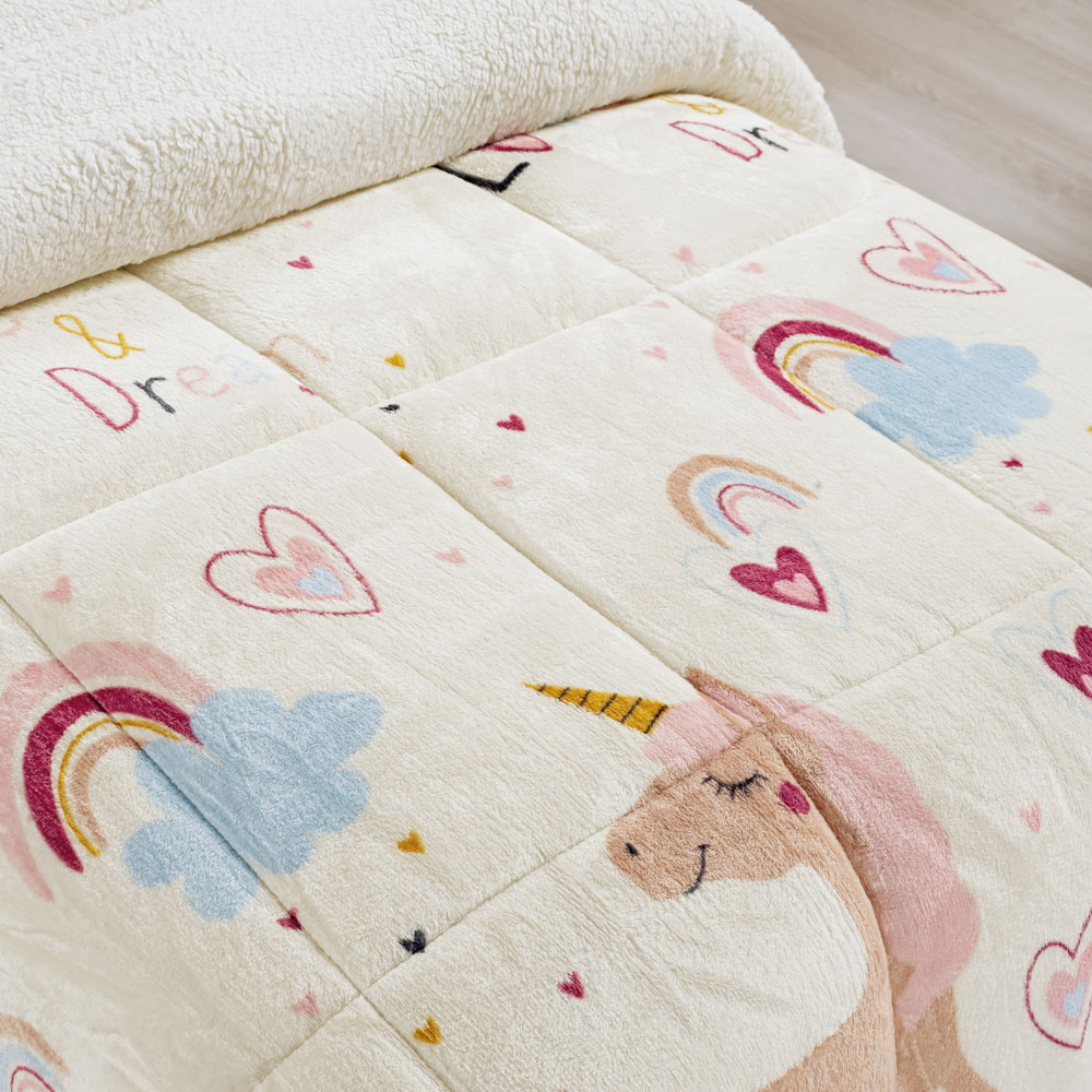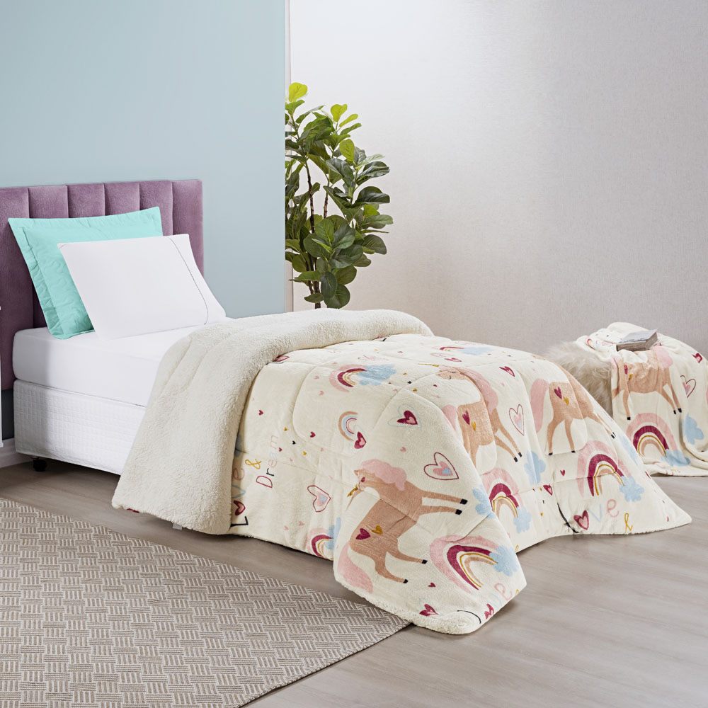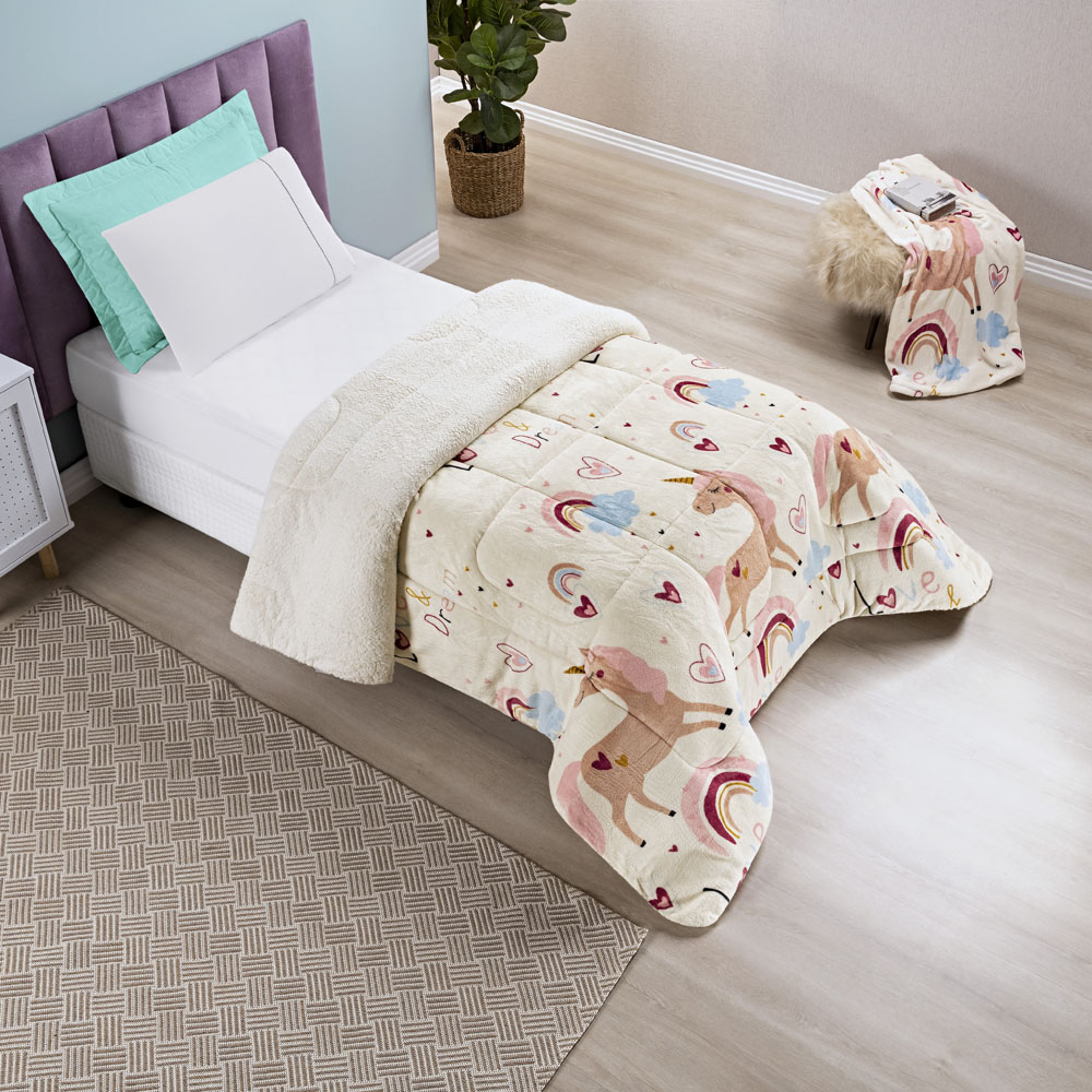 Coberdrom Cobertor Fantasy Solteiro Infantiil Sherpa Manta Toque Lã de Carneiro - Unicórnio - Rosa