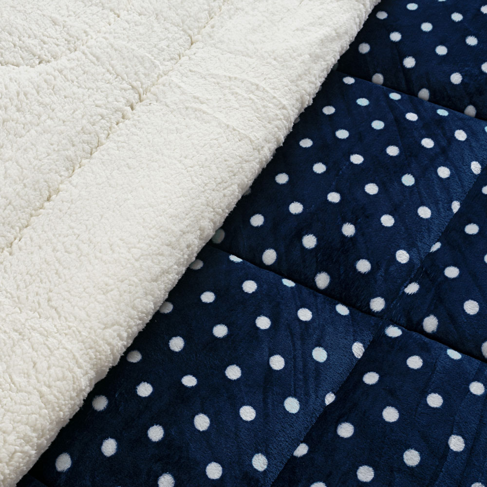 Coberdrom Cobertor Meggy Poá Solteiro Sherpa Manta Flannel Bolinhas - Azul Marinho