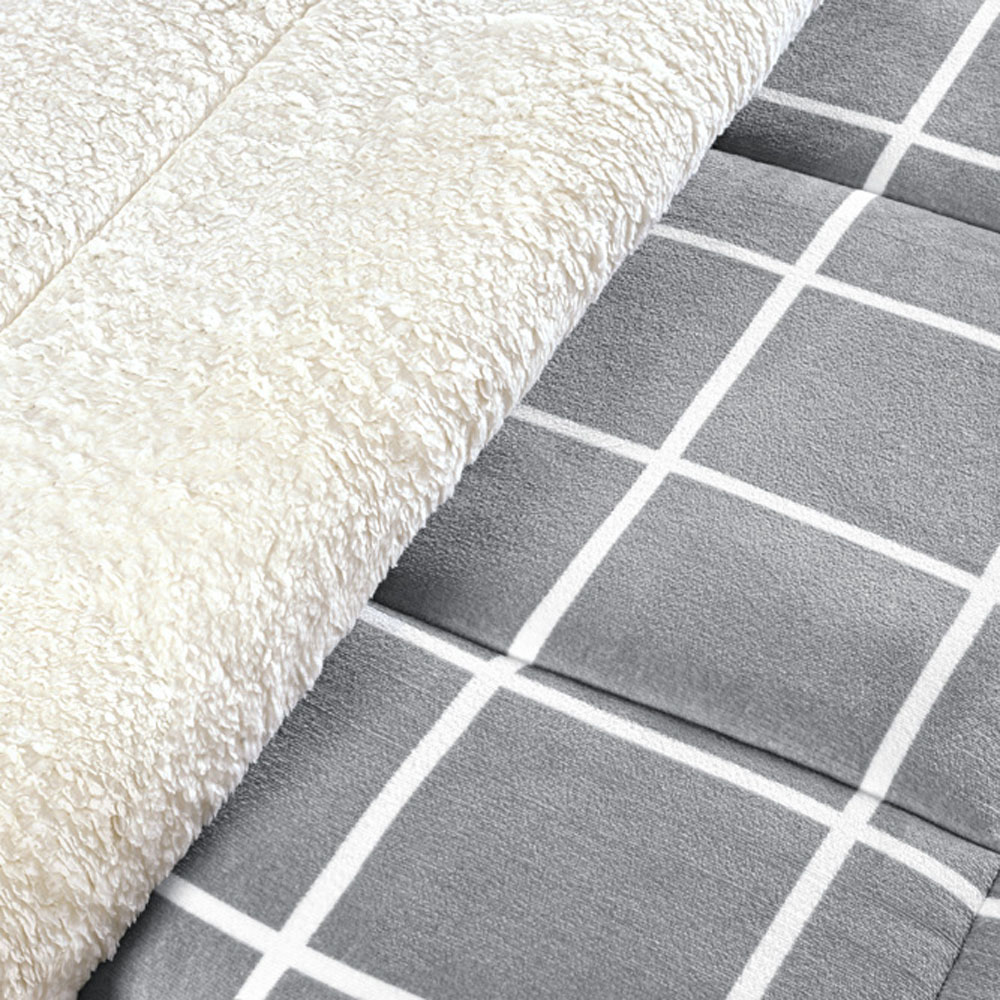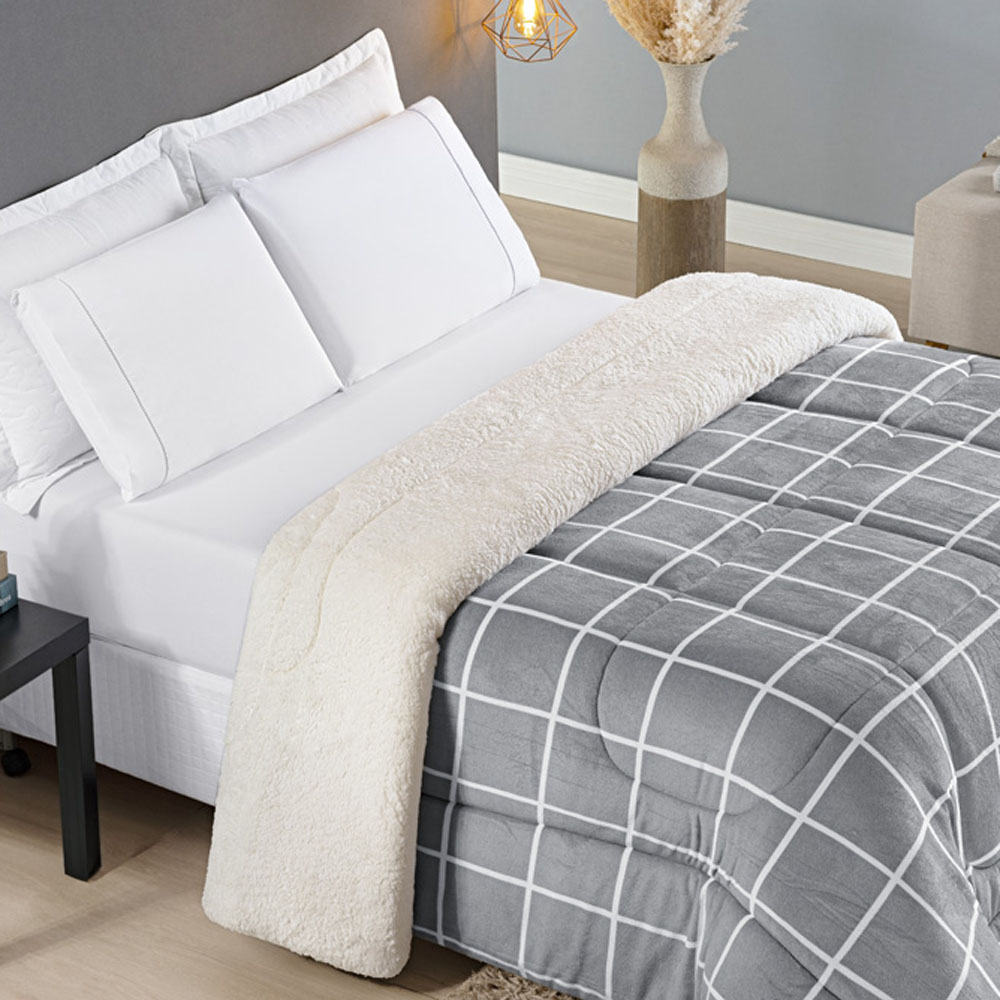 Coberdrom Cobertor Brooklyn Solteiro Sherpa Manta Flannel Quadriculado - Cinza