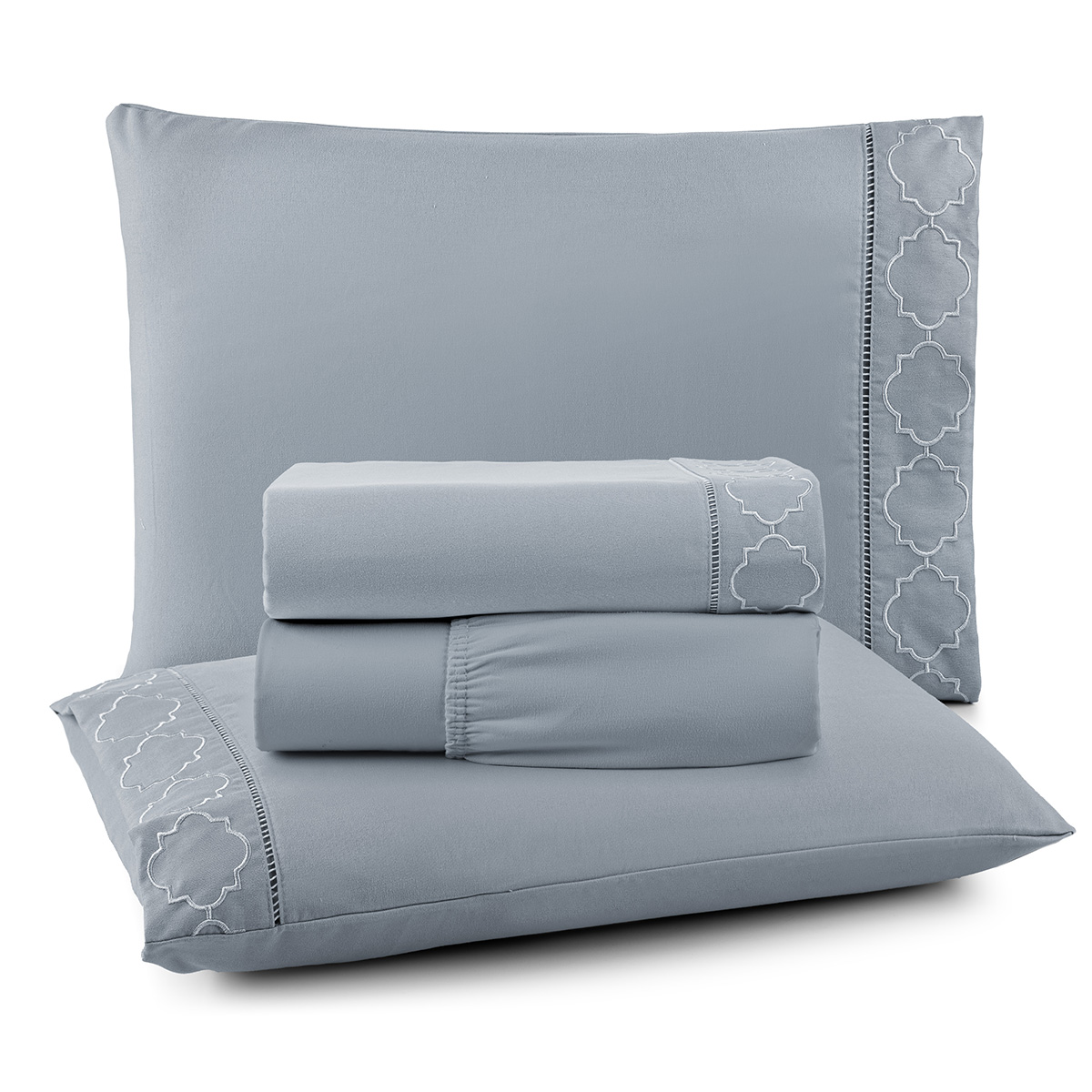 Jogo Cama Lençol Santoro Casal Padrão Micropercal 300 Fios 4 Peças - Cinza